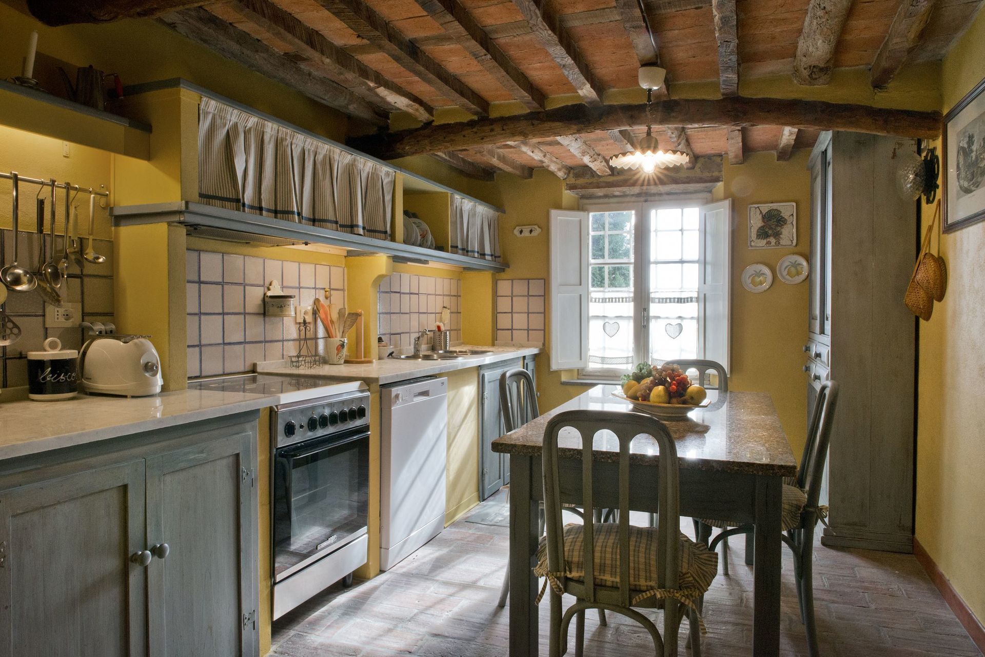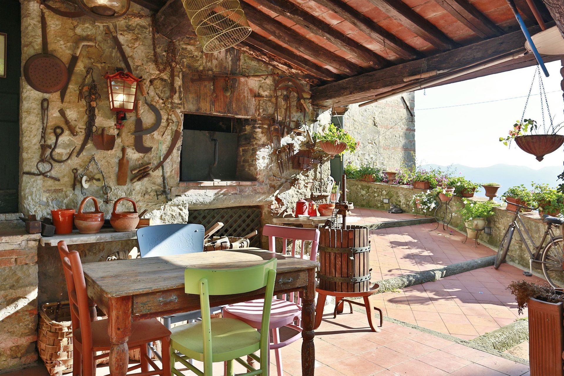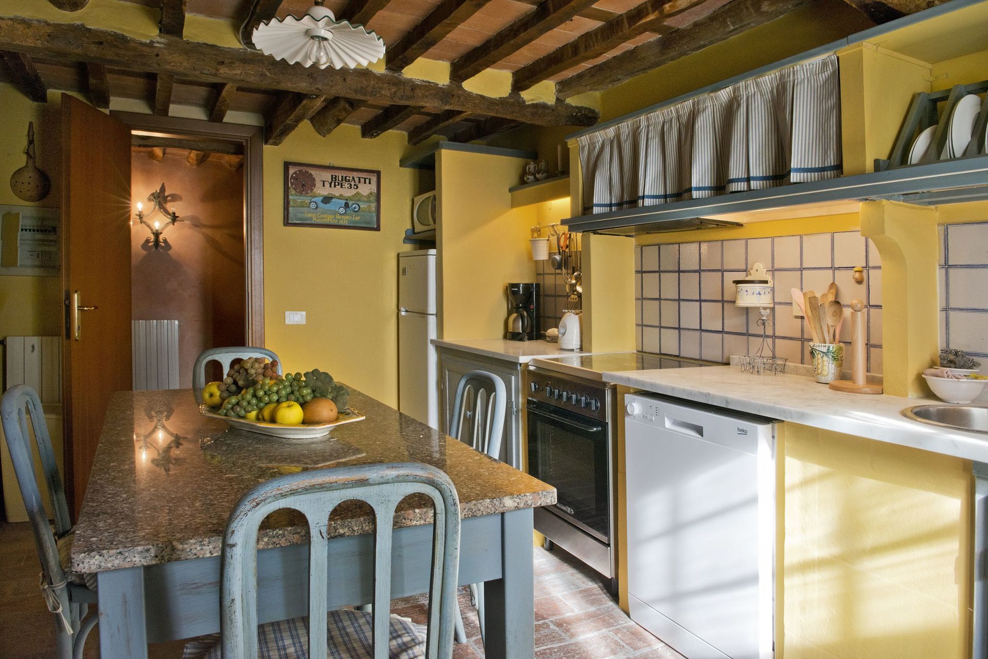 Ved ankomst til Borgo Antico Marina vil I finde en fin ren og velholdt ejendom med udsigt over bakkerne ideel til en fredelig ferie i Toscana. Efter en hektisk dag med museumsbesøg, er det dejligt at nyde lidt tid med venner og familie ved kanten af poolen med et glas vin - det er en perfekt måde at slappe af på sidst på dagen. Til jeres store nydelse er der på ejendommen legeplads og barbecue. At nyde et måltid med venner og familie er en stor del af den toskanske kultur. Benyt køkkenet til madlavning med lokale produkter, når du er på ferie. Køkkenet indeholder kaffemaskine, brødrister, komfur og køleskab, samt, masser af service og bestik til op til fem personer. Spis 'al fresco' som en ægte toskaner. Den fuldt møblerede veranda er det perfekte sted for at nyde sit måltid, familien og det dejlige toskanske vejr.