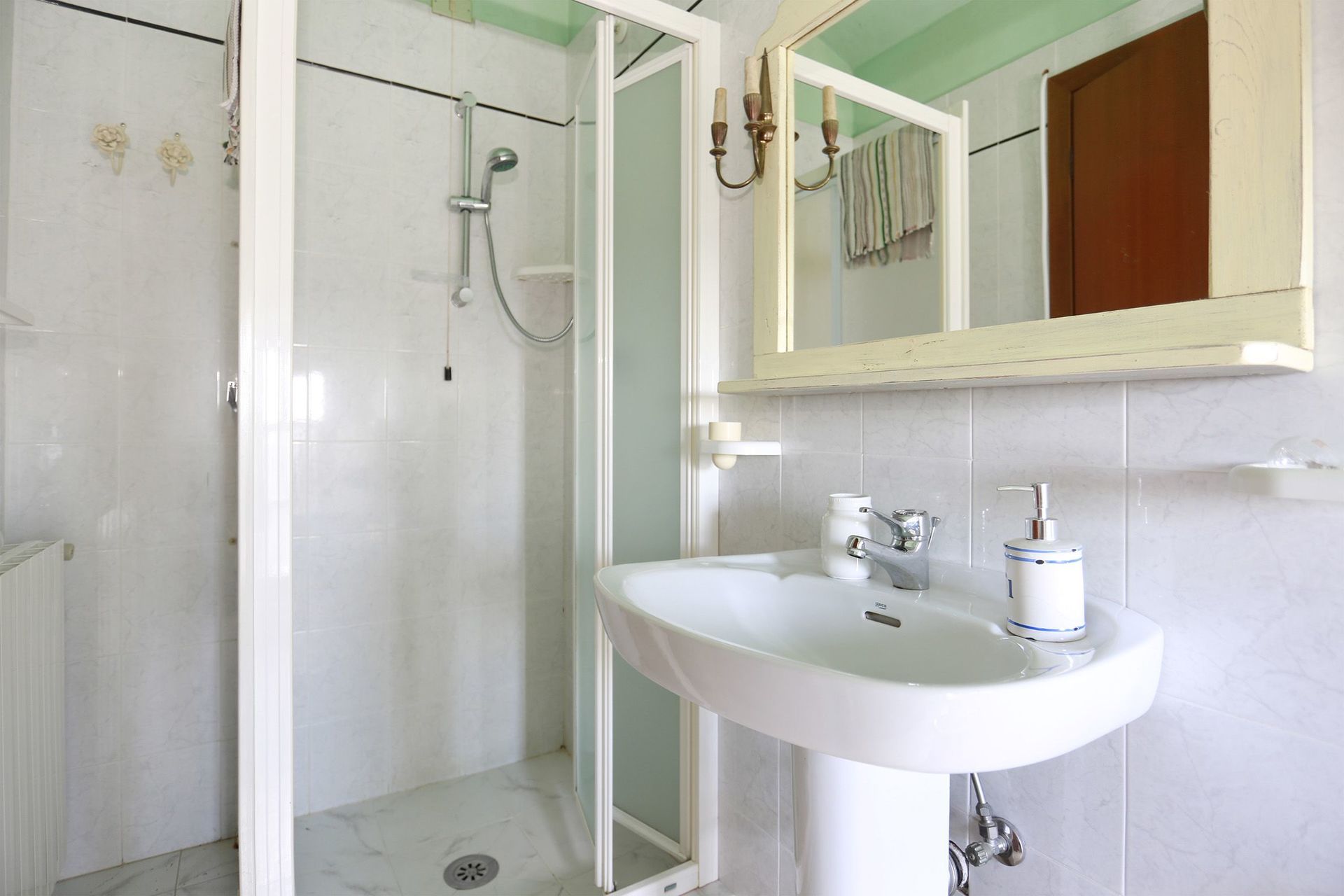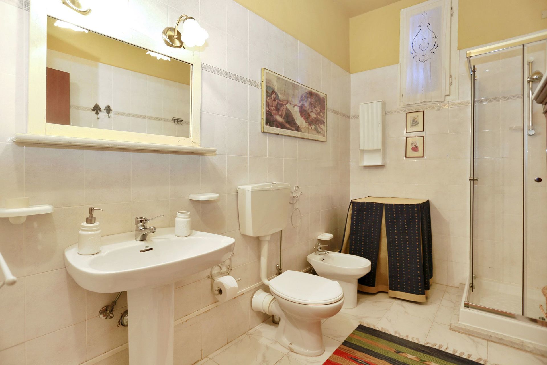Badeværelse: vask, wc, bidet, bruser.