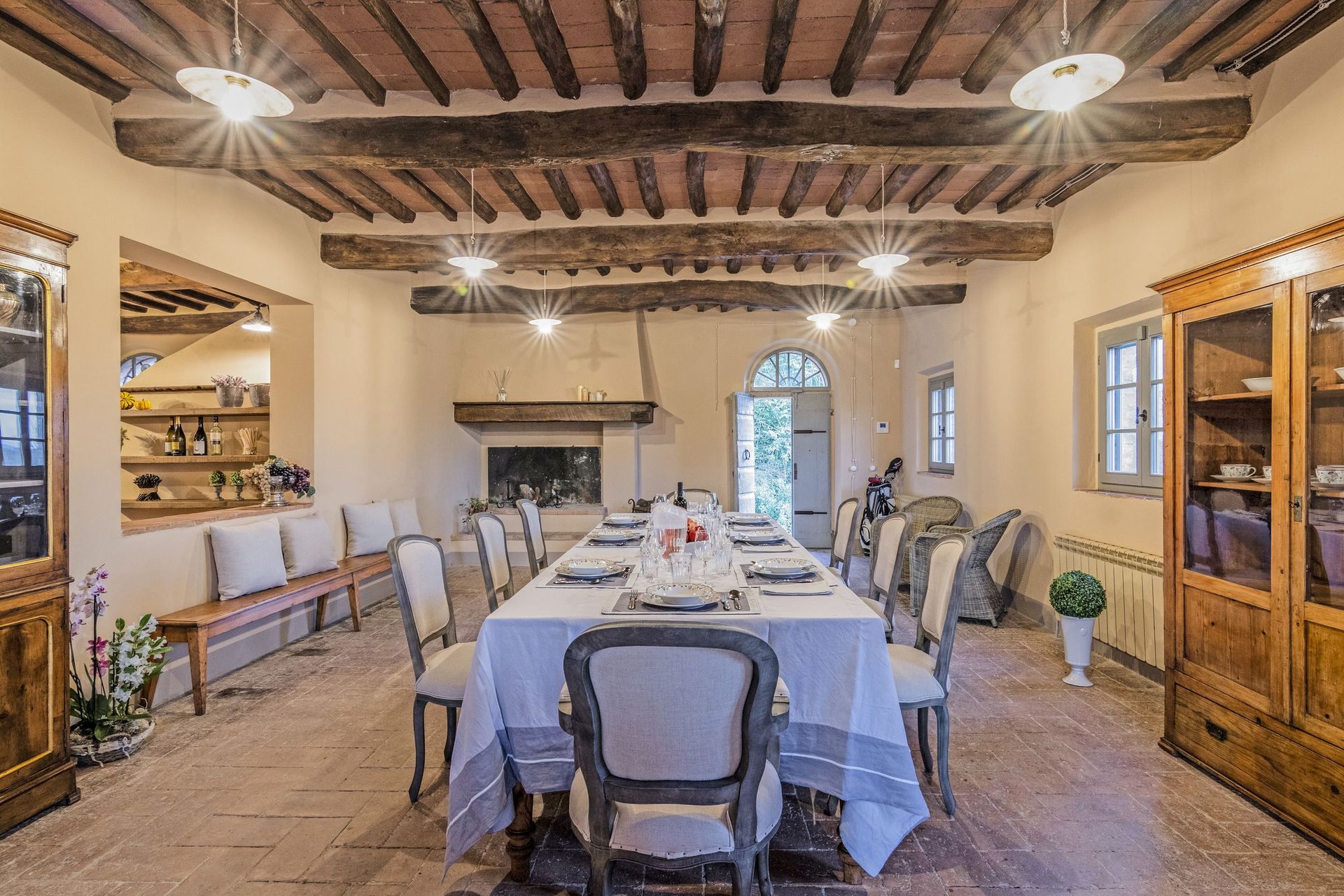 Inde i villaen er der traditionelle toscanske detaljer som terracotta gulve, stenvægge og bjælkeløbte lofter. Samtidig tilbyder de alle moderne bekvemmeligheder, såsom aircondition i de 5 soveværelser, wifi internet og et fuldt udstyret køkken.