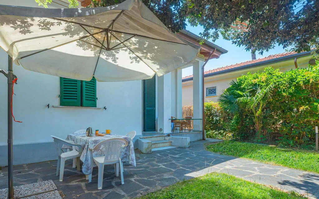 Villa "Anita" ligger i det rolige beboelseskvarter Tonfano tæt på Marina di Pietrasanta i Toscana. Villaen er en privat enfamilieferiehus omgivet af modne træer, der skaber en naturligt skygget og intim atmosfære. Ejendommen er fuldt indhegnet, hvilket sikrer fuldstændig privatliv og et sikkert miljø. Villaen kombinerer ro og naturskønhed med nærhed til havet og lokale faciliteter.