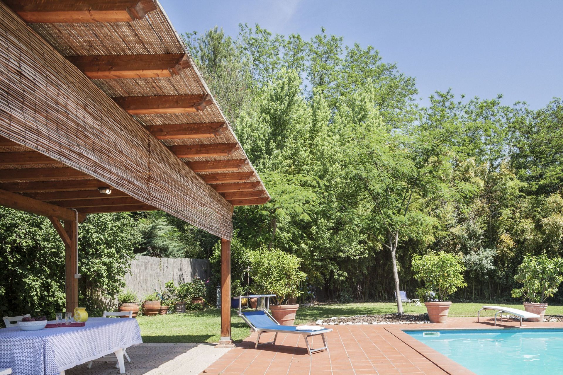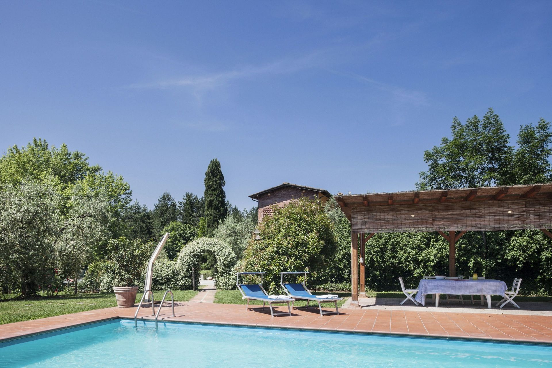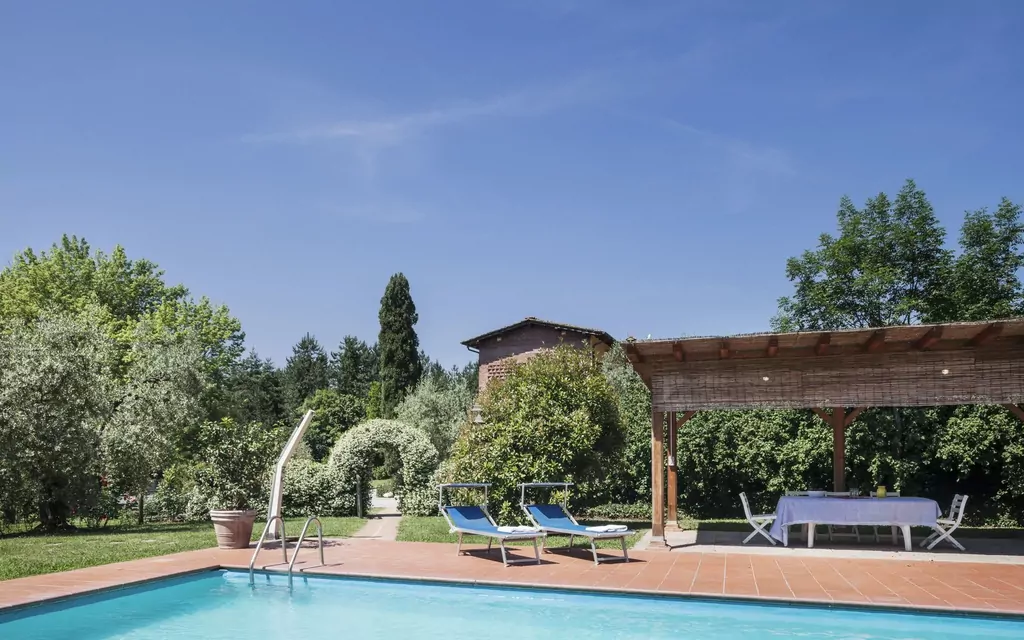 Der er en stor pergola med grill og brændeovn til udendørs spisning, bordtennis og nogle brætspil. Den meget velholdte have er indrettet med mange liggestole til at nyde solen samt mange skyggefulde områder. Desuden er den store private pool helt indhegnet for at garantere børns sikkerhed. Der er et spaområde til rådighed for gæster (2 timer om dagen) med indendørs jacuzzi, dampbad og sauna. På øverste etage er der en rummelig terrasse til rådighed, hvor gæsterne kan nyde en aperitif med udsigt over den smukke have og det toscanske landskab.