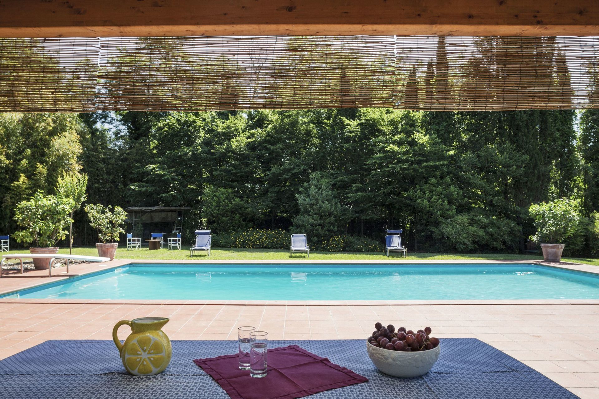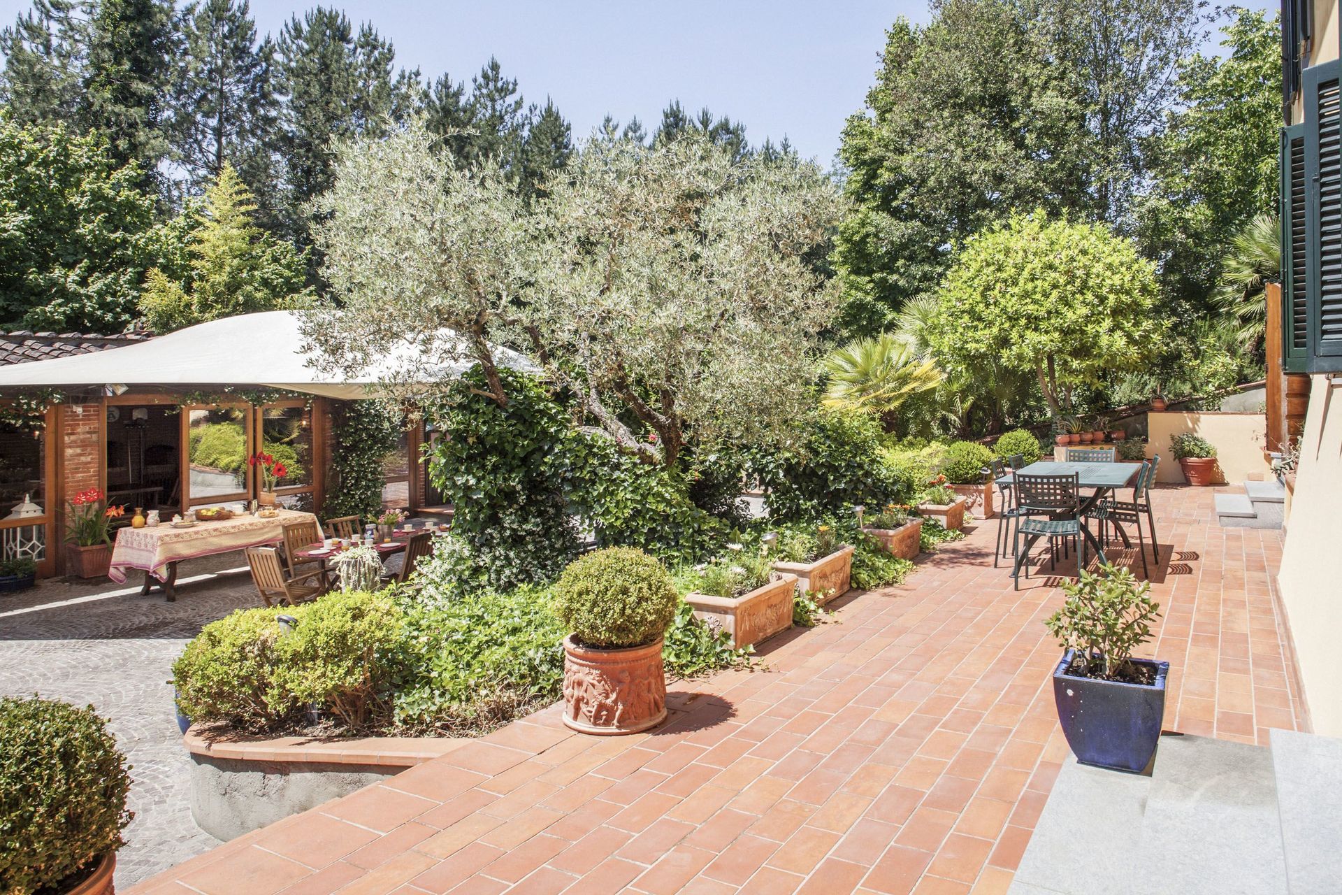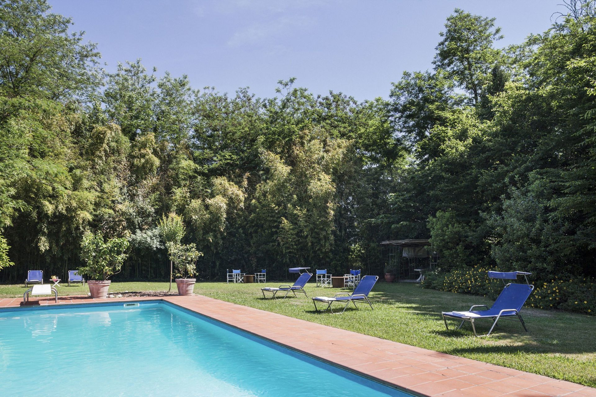 Der er en stor pergola med grill og brændeovn til udendørs spisning, bordtennis og nogle brætspil. Den meget velholdte have er indrettet med mange liggestole til at nyde solen samt mange skyggefulde områder. Desuden er den store private pool helt indhegnet for at garantere børns sikkerhed. Der er et spaområde til rådighed for gæster (2 timer om dagen) med indendørs jacuzzi, dampbad og sauna. På øverste etage er der en rummelig terrasse til rådighed, hvor gæsterne kan nyde en aperitif med udsigt over den smukke have og det toscanske landskab.
