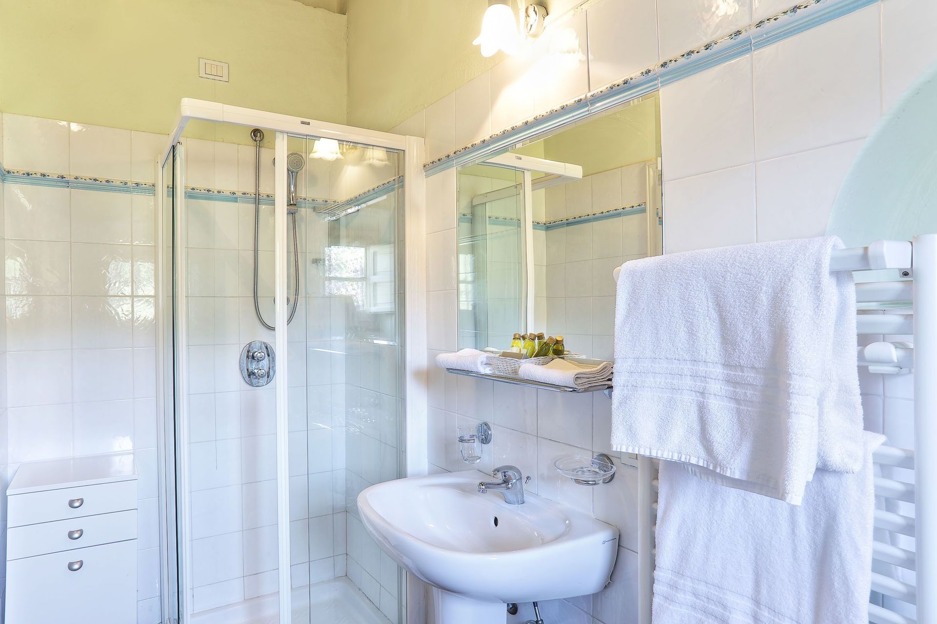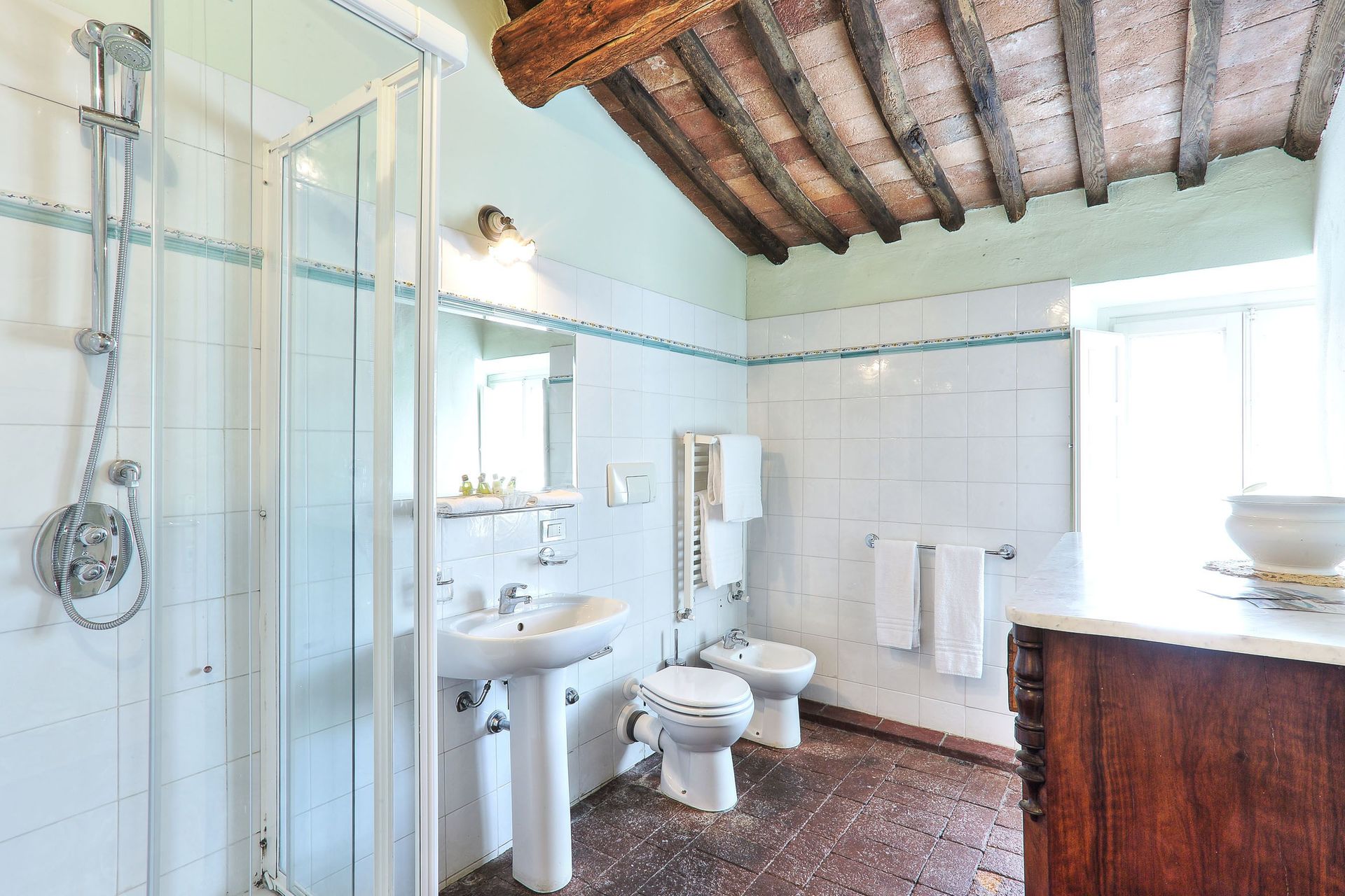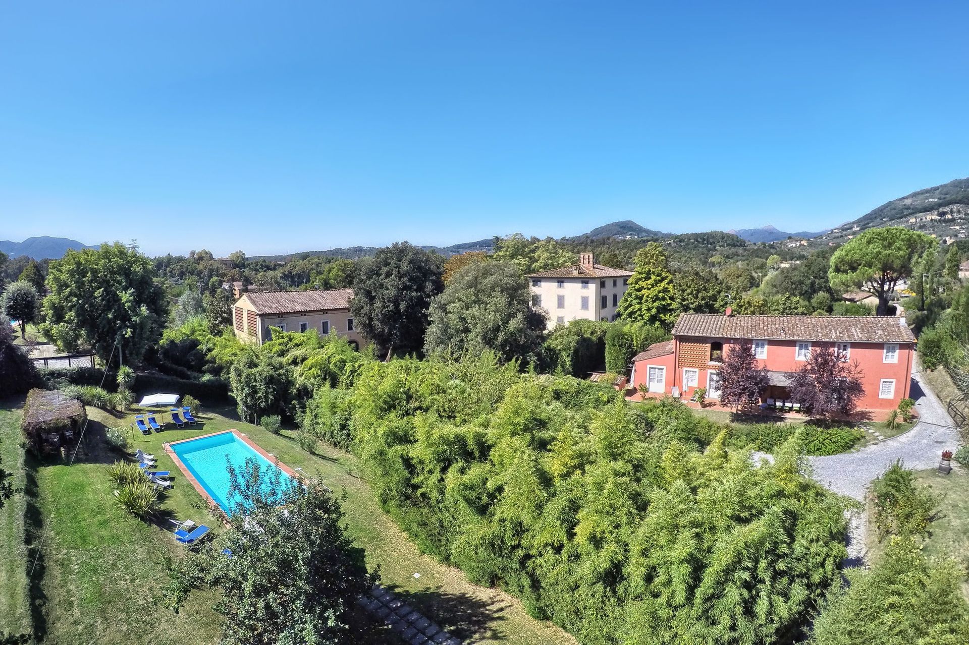 Large rooms all with their own spacious bathroom. The swimming pool was great for our group of 13, and the communal shaded outdoor area was perfect for bringing the group together around mealtimes. The hosts were very kind at arrival bringing a selection of very tasty food, and though we did not use any other services offered, there was much on offer (tours, guides, driver, food delivery). A great rustic slice of Lucca countryside, and very kid friendly (our group had kids of 2, 4, 5 and 12 year olds).