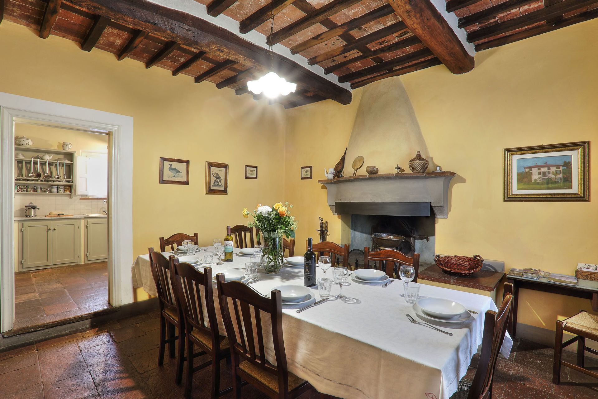 Ved ankomst vil I blive budt velkommen af ejeren eller repræsentanten og I vil finde en dejlig ren og velholdt ejendom ideel til en fredelig ferie i Toscana. Uanset hvordan I tilbringer dagene - med sightseeing, museumsbesøg, shopping eller bare ved at køre rundt på landet, så kan I slappe af med familie og venner ved poolen, når I kommer hjem, hvilket er en perfekt måde at afslutte endnu en dejlig dag på i Toscana. At nyde et måltid med venner og familie er en kæmpe del af den toskanske kultur. Benyt det velekviperede køkken til madlavning med lokale produkter, når du er på ferie. Køkkenet indeholder kaffemaskine, mikroovn, brødrister, komfur og køleskab, samt, masser af service og bestik til op til 12 personer. Spis 'al fresco' som en ægte toskaner. Den fuldt møblerede have er det perfekte sted for at nyde sit måltid, familien og det fine toskanske vejr.