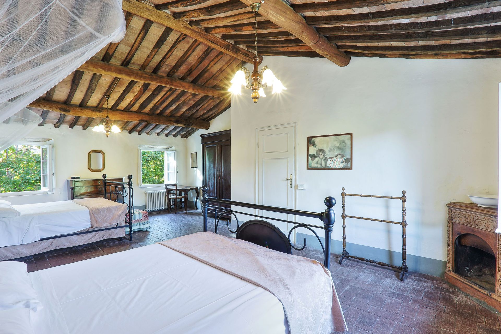 This was our first family holiday with the grandkids ( 4 year old, 18 month old and a 7 month old) and this villa ticked all the boxes - good size pool not too close to villa, proximity to Lucca and the airport and plenty of bathrooms. Our daily routine with young kids settled in quickly and easily as there was the Esselunga supermarket ( 10 mins drive) which became a daily visit, a garden centre/DIY ( 5 mins drive) for any bbq essentials and a great steak family oriented restaurant El Paso ( 10 mins drive). The swimming pool was a hit for adults and kids especially when it gets really hot in the afternoon. Thankfully all the rooms are equipped with efficient air conditioning for the night ( extras) and the wooden shutters on the windows help keep the heat out too. The beds were very comfortable ( mattresses on the firm side) and they come with mosquito netting which was indispensable. There is much higher mosquito activity being in the countryside in Italy, and thankfully we managed this after a visit to Esselunga for sprays and electric pest repellant.
