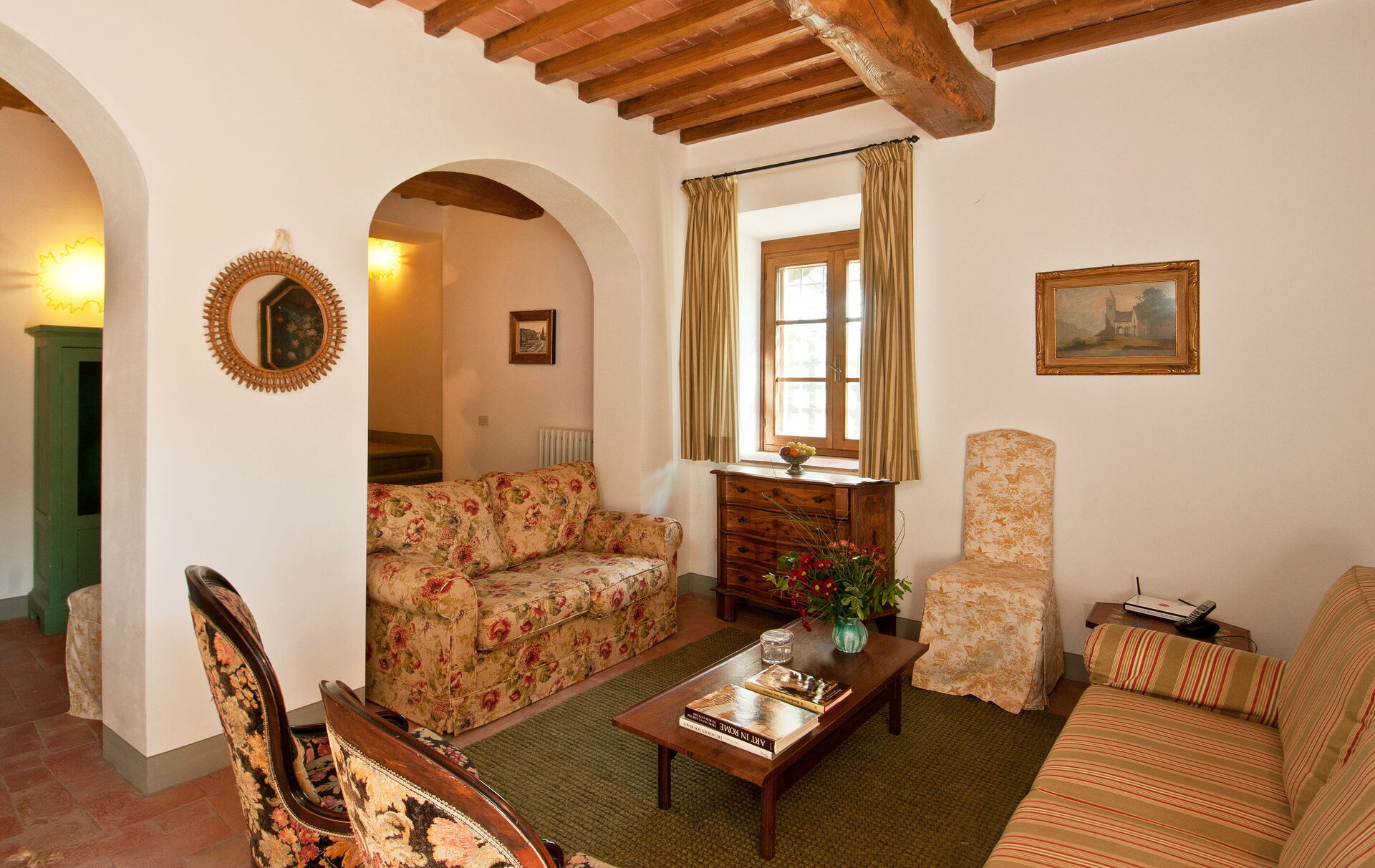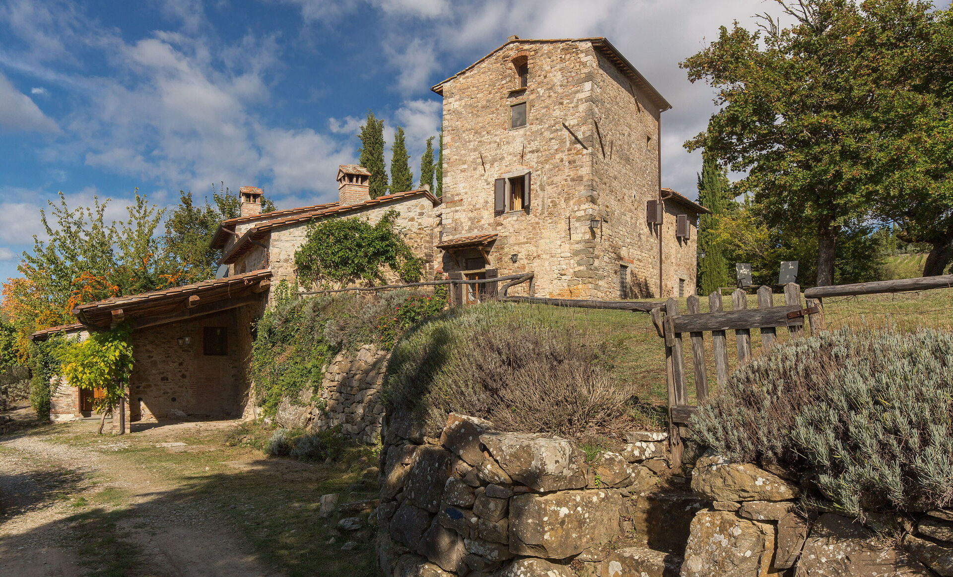 Denne smukke gård har en meget rolig og afsondret beliggenhed på Castello di Volpaias ejendom, hvor vi i mange år har udlejet to andre ejendomme, La Pozza og Il Casetto. Gæsterne kan nyde en fantastisk udsigt fra den overdækkede terrasse, som er indrettet til udendørs spisning og er også meget praktisk for familier, da den har udsigt over poolen, så forældrene kan slappe af, mens de holder øje med poolområdet. Den befæstede landsby Volpaia byder på to gode restauranter, hvoraf den ene ejes af ejendommen. Det engelsktalende ejendomspersonale kan arrangere madlavningskurser, besøg i vinkældre og vil gerne hjælpe gæsterne under deres ophold.