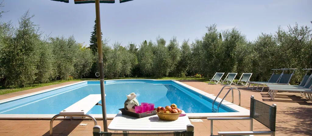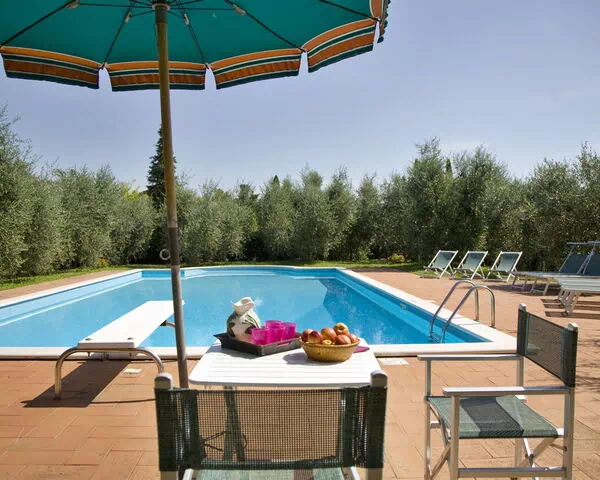 Denne smukke ejendom ligger roligt og i gåafstand fra landsbyen Palaia fra det 12. århundrede og har en smuk udsigt over de omkringliggende olivenlunde, vinmarker og middelalderlige landsbyer. De udendørs boligarealer og den indhegnede have er særlig velholdt og gør ejendommen ideel til familier med børn. På den ene side af huset er der en overdækket loggia, møbleret til udendørs spisning. Der er en anden udendørs spiseplads med indbygget grill/ ovn, så gæsterne kan spise i det toskanske solskin.