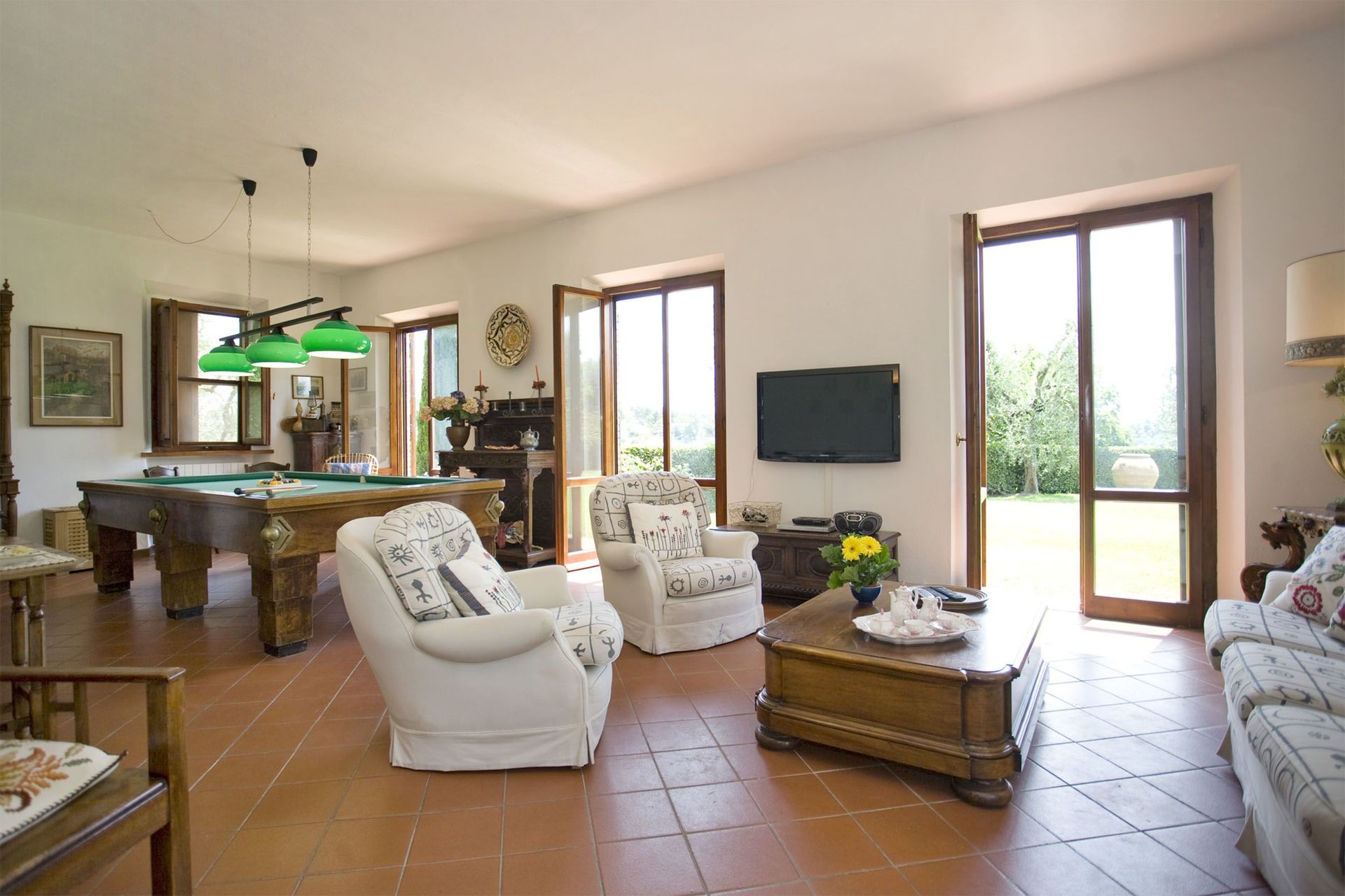 Der er et billardbord i stuen.