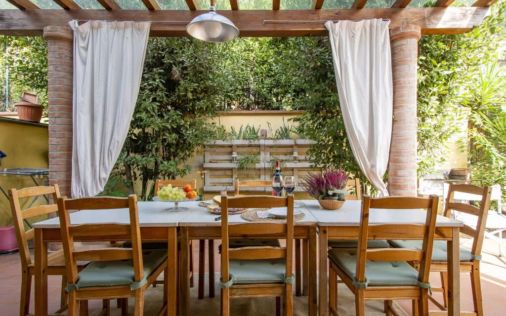 Smuk rustik "La Rondine", tilbygget. I lille byen Pugnano, 7 km fra bymidten af San Giuliano Terme, 12 km fra centrum af Pisa, 10 km fra bymidten af Lucca, i en bydel, 20 km fra havet. Til alene benyttelse: grund 200 m2 (indhegnet), velplejet have med blomster og træer. Tilkørsel (50 m natursti). Parkeringsplads på grunden. Indkøbsforretning 1.5 km, supermarked 2.5 km, bar 1.4 km, busstoppested 200 m, banegård "Pisa" 14 km, sandstrand "Marina di Vecchiano" 20 km, klippestrand "Marina di Pisa" 30 km, svømmehal 7 km. Golfbane (9 hul) 9 km. Ejeren bor i et separat parcelhus.