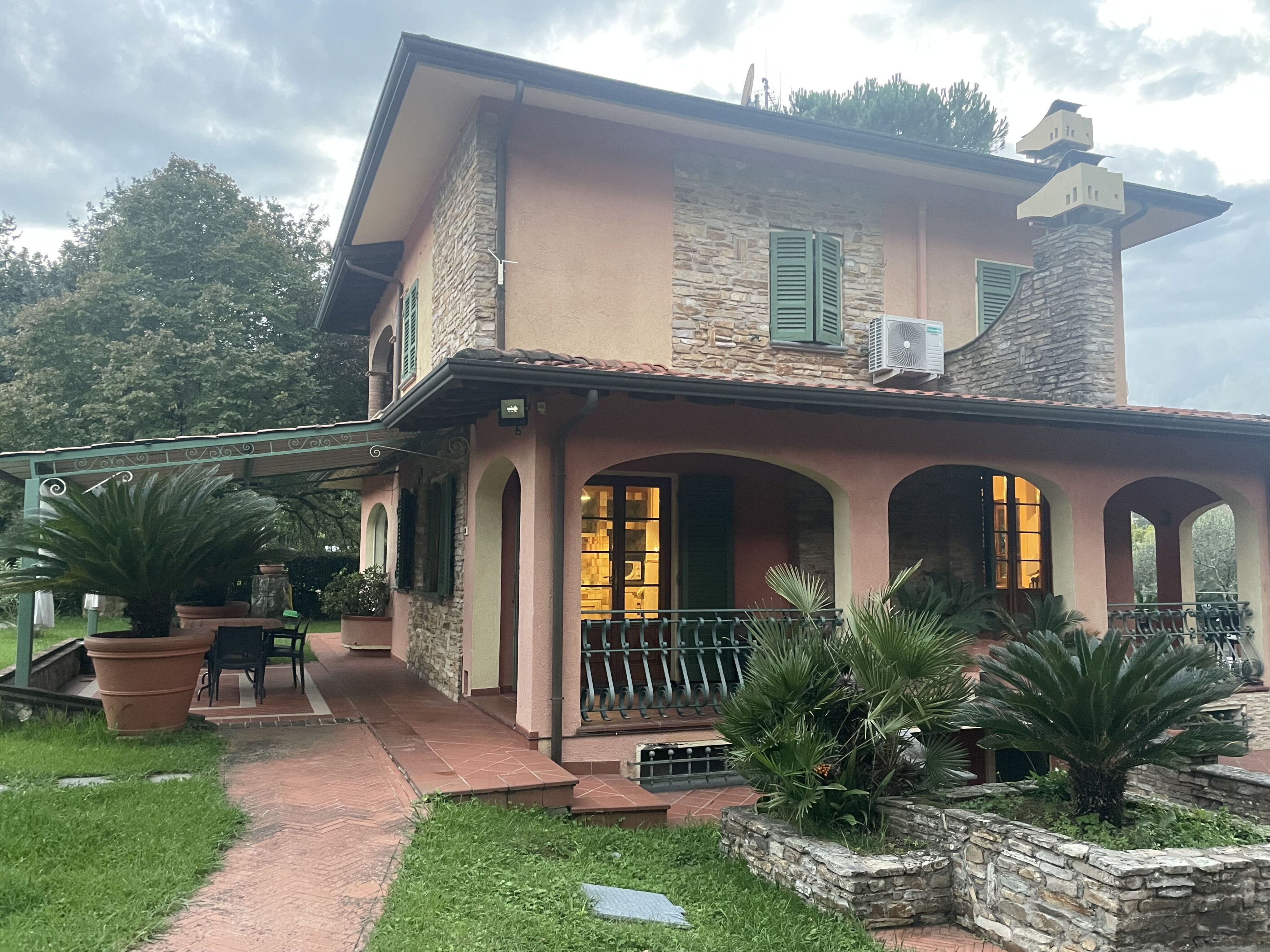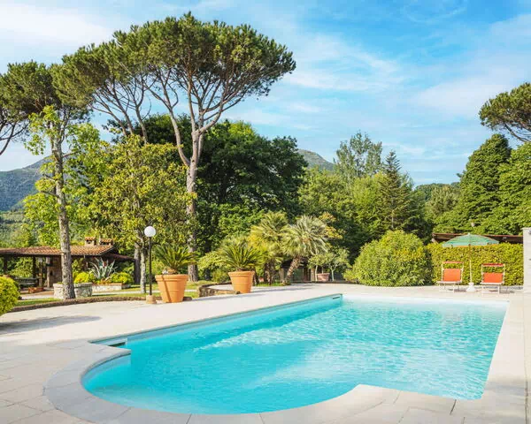 Villa "Costacce" ligger i det rolige område Pontemazzori, 4 km fra Camaiores centrum i Toscana. Ejendommen er en enfamiliehus på 2.000 m2, omgivet af frodig vegetation og beliggende i det fredelige toscanske landskab. Haven omfatter et naturreservat, åbne enge og gamle træer, som skaber et autentisk naturmiljø. En privat svømmepøl på 10 x 5 meter inviterer til afslapning i de varmere måneder.