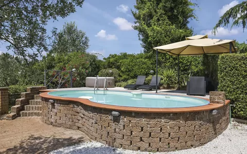 Feriehytte "Desideri". 4 km fra bymidten af Vinci, ved bykanten, 3 km fra centrum af Lamporecchio, 50 km fra bymidten af Firenze, i det grønne. Til alene benyttelse: grund 500 m2 (indhegnet) med træer, græsmark, pool (oppsted svømmebassin) nyreformet (8 x 5 m, 130 cm dyb, Sæsonbestemt tilgængelighed: 10.Maj. - 25.Sep.). Udendørs brus, boblebad, terrasse, havemøbler, grill, parkeringsplads på grunden. Supermarked 3 km, busstoppested 2 km, banegård "Empoli" 15 km, sandstrand "Viareggio" 65 km. Golfbane (18 hul) 15 km.