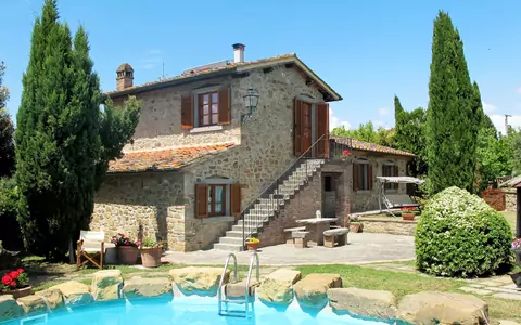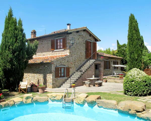 Casa Clotilde er et renoveret landsted beliggende i det stille Toscana-landskab ved Civitella In Val Di Chiana i Italien. Villaen ligger på en rolig og solrig placering, fordelt over 2 etager, og egner sig særligt til familier eller vennegrupper. Ejendommen omfatter en stor privat indhegnet have på 350 m2 med græsplæne og modne træer, samt en svømmepøl på 13 x 7 meter, der udgør hovedpunktet for udendørs afslapning.