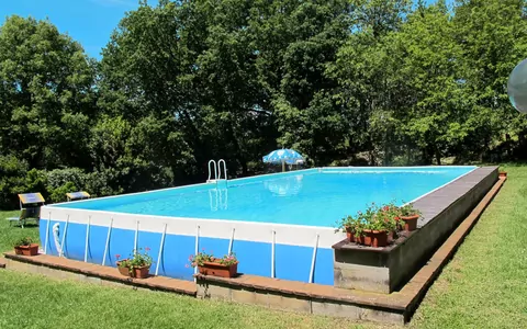 Distance to swimming pool 100 m. Country house "Podere La Morra", detached, surrounded by trees, meadows and fields. 8 apartments in the residence. 7 km from the centre of Sovicille, 17 km from the centre of Colle di Val d'Elsa, 13 km from the centre of Siena, in a secluded position, 80 km from the sea. For shared use: property 6 ha, garden with plants and trees, meadow, swimming pool (above ground) (12 x 6 m, depth 120 cm, seasonal availability: 15.May.-15.Oct.). Barbecue. In the house: lounge with TV, washing machine (for shared use, extra). 1.6 km long motor access (via unmade road). Parking on the premises. Grocery 7 km, supermarket 13 km, restaurant 7 km, railway station "Siena" 13 km, sandy beach "Cecina Mare" 80 km, outdoor swimming pool 13 km, indoor swimming pool 13 km. Please note: the owner lives in the same residence. The owner has a dog. Animals in the neighbourhood.