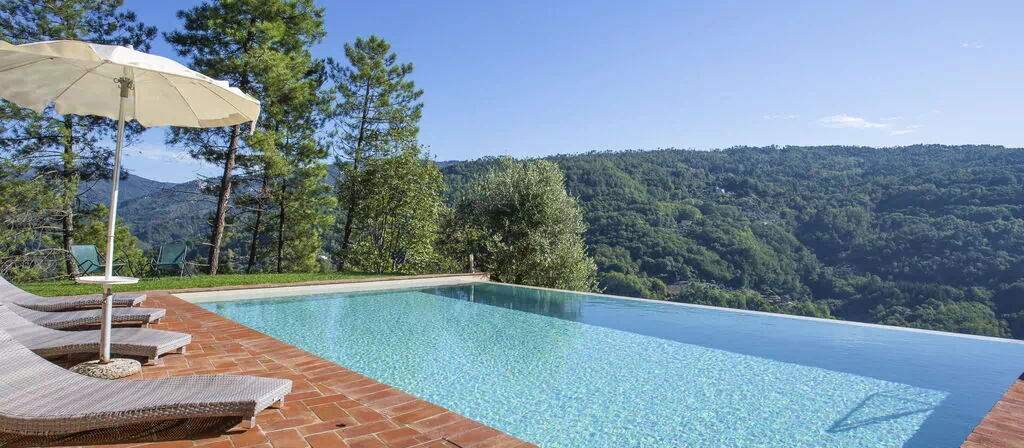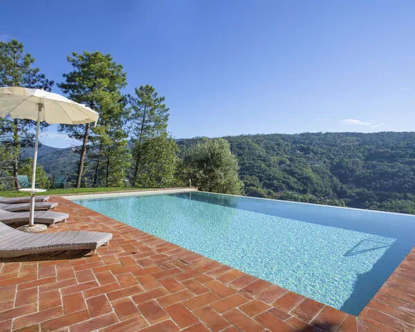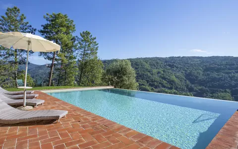 Feriehuset "Aurora" ligger blandt træerne på 200 meters højde over havet på en bakket skråning i hjertet af Toscana, blot 3,2 km fra den charmerende by Pescia. Ejendommen spænder over 500 m² og kombinerer rustik elegance med premium faciliteter, med udsigt over det omkringliggende landskab. Huset råder over et dedikeret wellnessområde med infrarød sauna og et opvarmet L-formet hydromassagebad med vandfald på 11 m², udstyret med saltelectrolyse-system. Ejendommen har plads til op til 5 biler på sin private parkeringsplads og tilbyder også en elbil-ladestation på stedet.