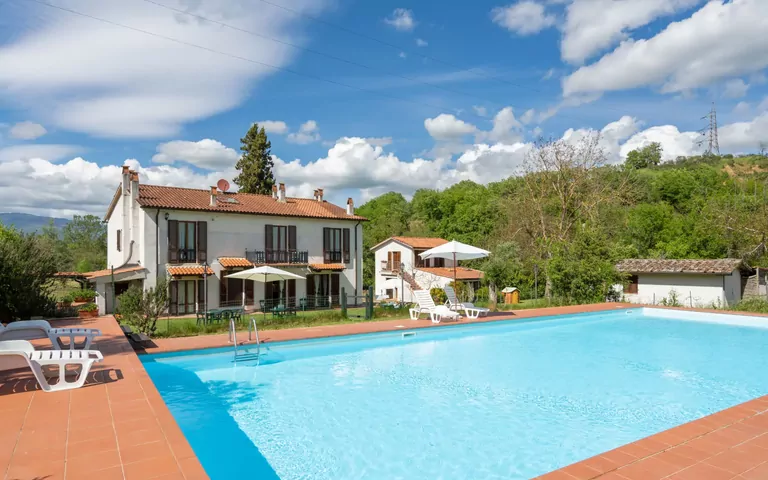 Hus på landet "Podere Ritali", på 2 etager. Ejendom bestående af hovedhus og udhus, 7 km fra bymidten af Civitella, 3 km fra centrum af Ponticino, isoleret beliggenhed. Til alene benyttelse: grund, have (ikke hegnet ind), naturhave, græsmark, liggeplæne, pool indhegnet (18 x 8 m, 130 - 150 cm dyb, Sæsonbestemt tilgængelighed: 01.Maj. - 30.Sep.). Udendørs brus, terrasse. I huset: bordtennis, bordfodbold, vaskemaskine. Rundstykkeservice og drikkevareservice. Indkøbsservice mulig før ankomst. Stejl tilkørsel (200 m natursti). Parkeringsplads på grunden. Indkøbsforretning 3 km, supermarked 3 km, bar 3 km, busstoppested 3 km, banegård "Ponticino - Arezzo" 20 km, sandstrand "Castiglione della Pescaia" 145 km. Ridehal 2 km. Nærliggende attraktioner: Arezzo 15 km, Siena 55 km, Firenze 60 km, Equestriian Center Arezzo 15 km. Bemærk venligst: bil anbefales. Ejeren accepterer ikke nogen ungdomsgrupper.