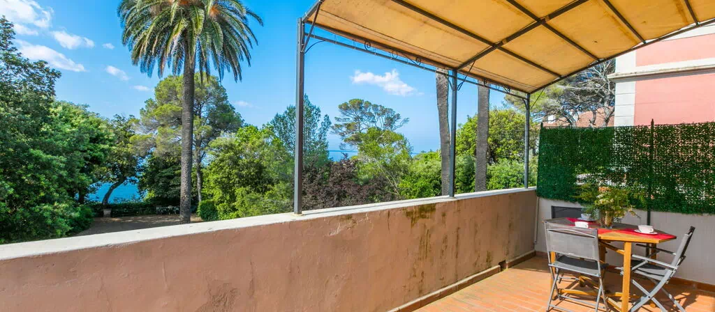 Første sal huser 2 soveværelser: det første indeholder 1 enkelteng og 1 dobbeltseng, det andet indeholder 2 enkeltesenge. Et badeværelse med badekar, bidet og WC betjener denne etage. En stor delvis overdækket terrasse med terrassemøbler er tilgængelig fra første sal og giver udsigt til havet og haven. Sengeopsætningen er fleksibel, og flere sovekonfigurationer er mulige end maksimalt 6 gæster, hvilket ikke må overskrides under nogen omstændigheder.