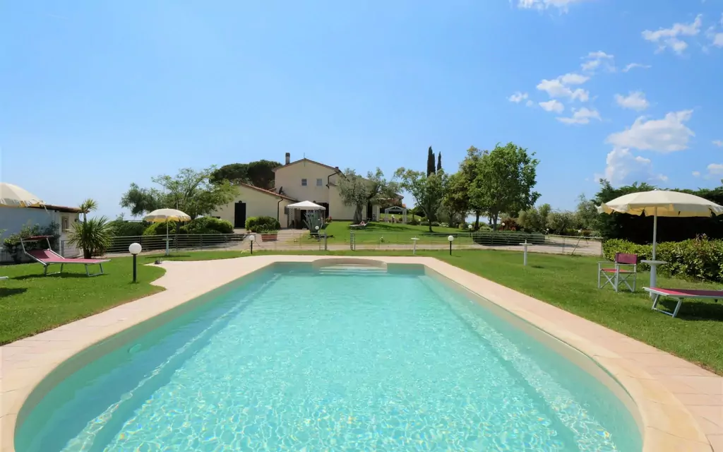 Hus på landet "Baia degli Ulivi", fritstående, omgivet af træer, græsmarker og marker. 8 lejligheder i bygningen. 9 km fra bymidten af Massa Marittima, 11 km fra centrum af Follonica, 80 km fra bymidten af Siena, 11 km fra havet, 7 km fra søen. Til medbenyttelse: grund 100'000 m2, græsmark, pool (11 x 6 m, Sæsonbestemt tilgængelighed: 15.Maj. - 30.Sep.). Udendørs brus. I huset: vaskemaskine (til medbenyttelse, ekstra). 900 m lang, tilkørsel (natursti). Parkeringsplads på grunden. Indkøbsforretning 800 m, supermarked 9 km, restaurant, busstoppested 800 m, færge "Piombino" 40 km, sandstrand "Follonica" 11 km, havet Lago dell'Accesa 7 km. Marina 17 km, golfbane (18 hul) 14 km. Bemærk venligst: ejer bor på sammen grund. Ejeren har en hund.