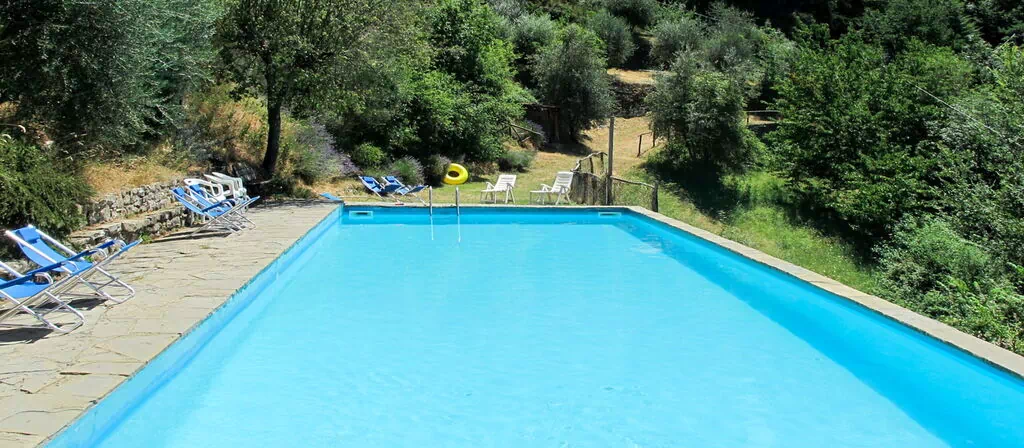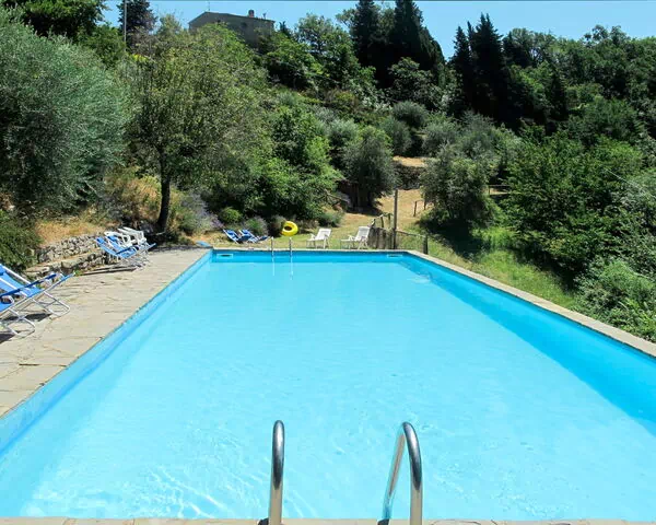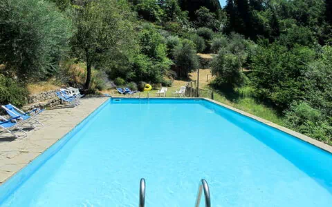 Den delte svømmepøl måler 15 x 7 meter og er tilgængelig fra 10. maj til 25. september; en udendørs bruser befinder sig i nærheden. Terrassen er udstyret med havemøbler og egner sig til udendørs spisning og afslapning. Et grillområde inviterer til udendørs madlavning, og der er en rutsjebane og gynge til de yngste gæster. Ejendommens private naturgrund strækker sig over 70.000 kvadratmeter med træer og åbne enge. Gangstier begynder 100 meter fra huset og fører direkte ind i skoven samt ud i det bredere toscanske landskab.