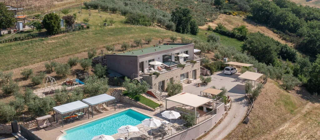 Villa Futura er en moderne og lyslys villa beliggende i det kuperede umbrianske landskab i Mellemitalien. Villaen blev bygget i 2015 og ligger 350 meter over havet på en solrig bakketop, 9 kilometer fra Todis historiske centrum, en af Umbrias mest berømte middelalderlige byer. Ejendommen omfatter en privat have på 1.000 kvadratmeter og tilbyder således rigeligt udendørsareal til afslapning og rekreation.