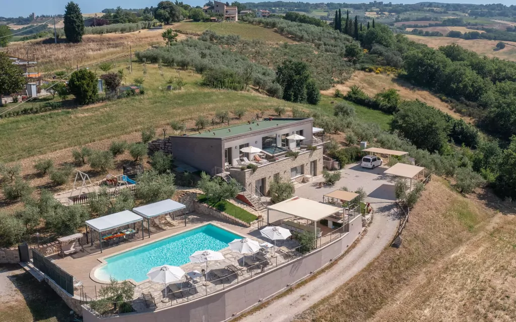 Perfekt integreret i landet, er denne moderne, lyse og komfortable villa ideel til dem, der ønsker at tilbringe en ferie i naturen uden at ofre komfort. Moderne, komfortabelt villa "Futura", 350 meter over havets overflade, fritstående, bygget i 2015, omgivet af marker. 9 km fra bymidten af Todi, solrige beliggenhed på en bakke. Til alene benyttelse: have 1'000 m2, pool (6 x 12 m, 145 cm dyb, Sæsonbestemt tilgængelighed: 07.Apr. - 30.Sep.) med indetrappe. Udendørs brus, terrasse, havemøbler, grill, legeplads. I huset: cykler på stedet (ekstra). Til afbenyttelse: cykler (5). Rengøring af lejlighed daglig muligt (ekstra). Hushjælp daglig muligt (ekstra). Tilkørsel (100 m natursti). Parkeringsplads (for 4 biler, overdækket) ved huset. Fødevarebutik 3 km, supermarked 6 km, restaurant 3 km, bar 3 km, banegård "Todi (Ponte Rio)" 8 km, badesø "Trasimeno" 53 km. Nærliggende attraktioner: Bevagna 26 km, Spoleto 37 km, Foligno 30 km, Orvieto 41 km, Perugia 45 km. Bemærk venligst: bil anbefales. Babyudstyr. Unge grupper kun på forespørgsel. Velegnet till arrangementer.