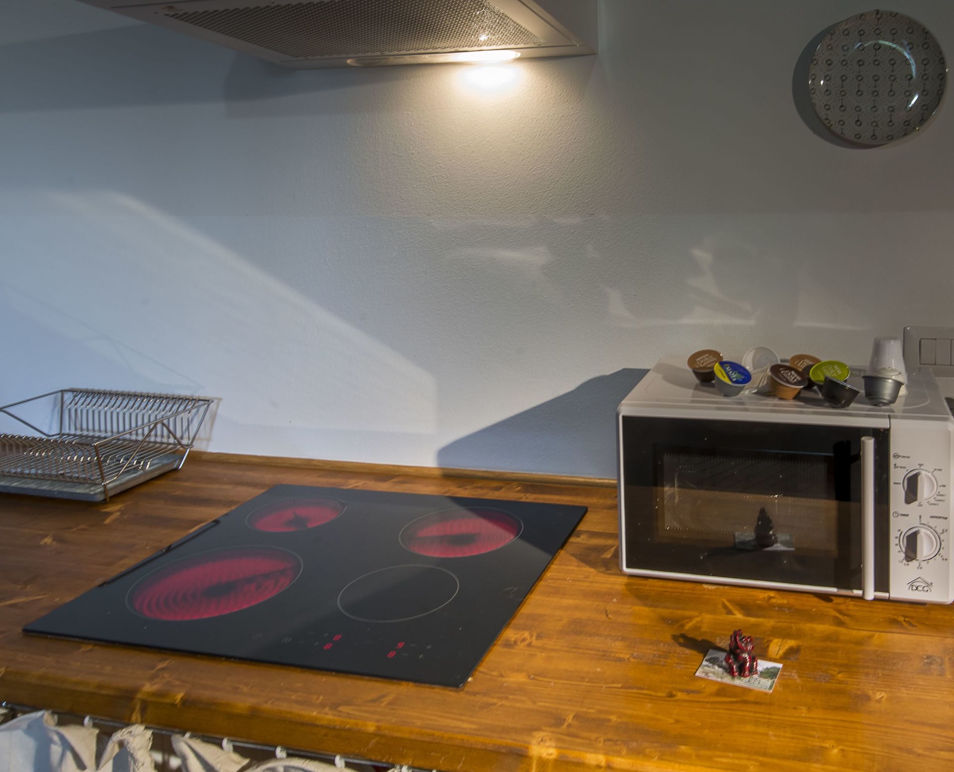Hvis I nyder at lave mad til familie og venner så er der et veludstyret køkken med kaffemaskine, mikroovn, komfur og køleskab , samt masser af service og bestik til op til fire personer.