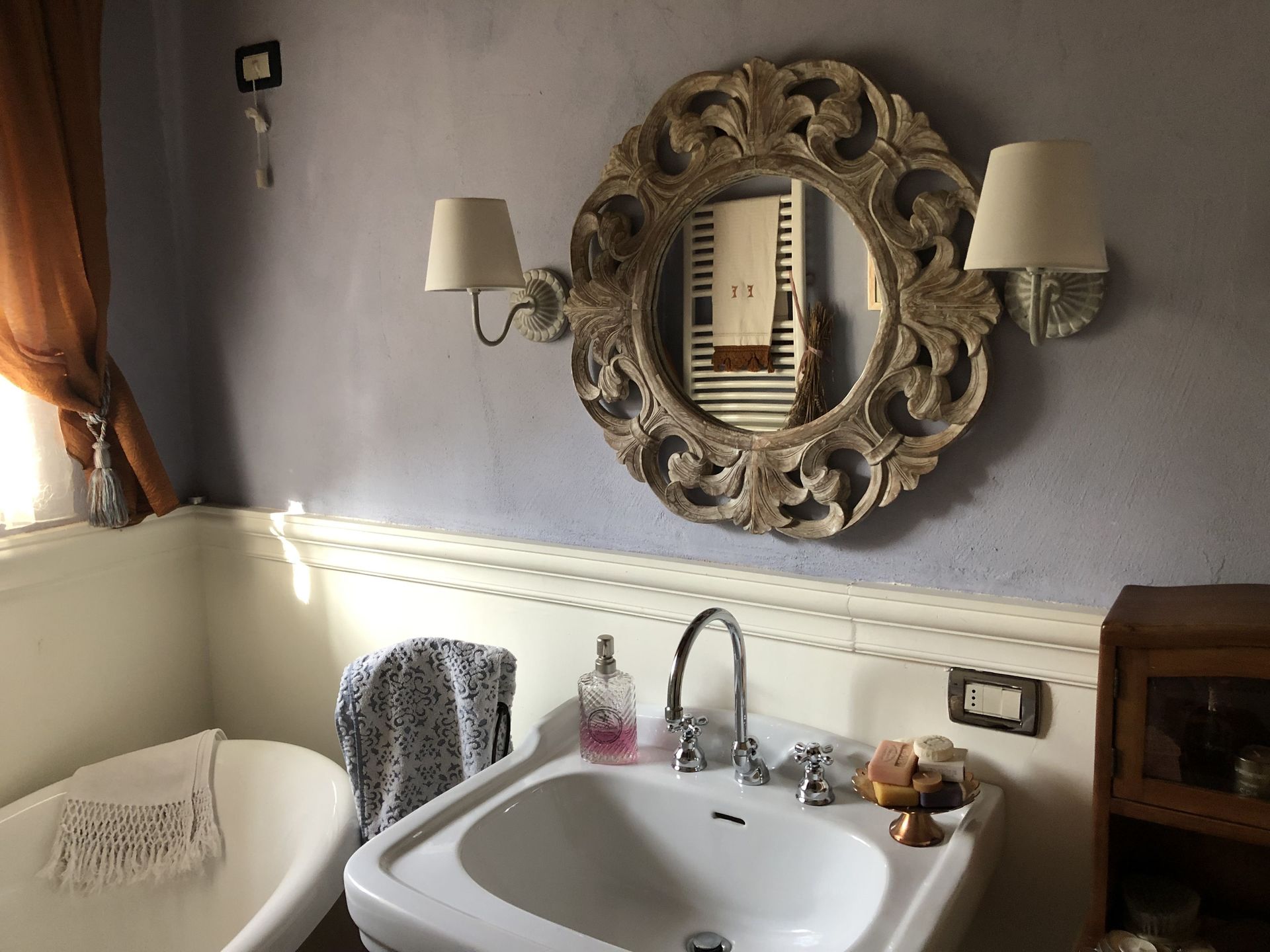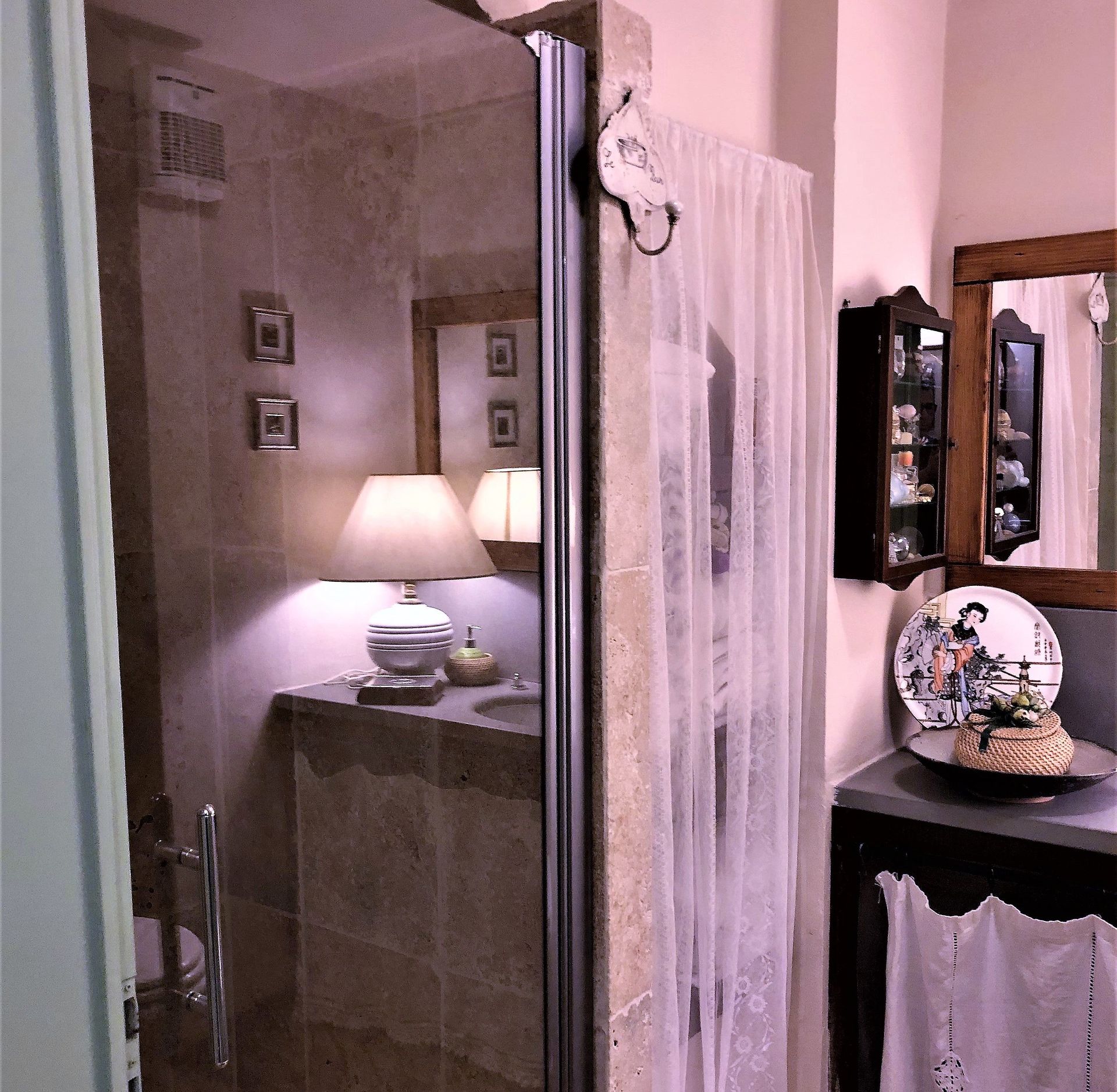 Soveværelse med bad (19.75 m2): dobbeltseng, WIFI internet, vask, bidet, bruser, hårtørrer, badeværelse uden vindue.