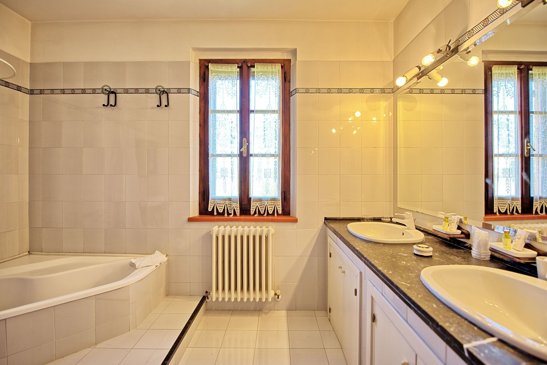 - 7 soveværelser og 5 badeværelser. Et af soveværelserne har adgang til et andet soveværelse