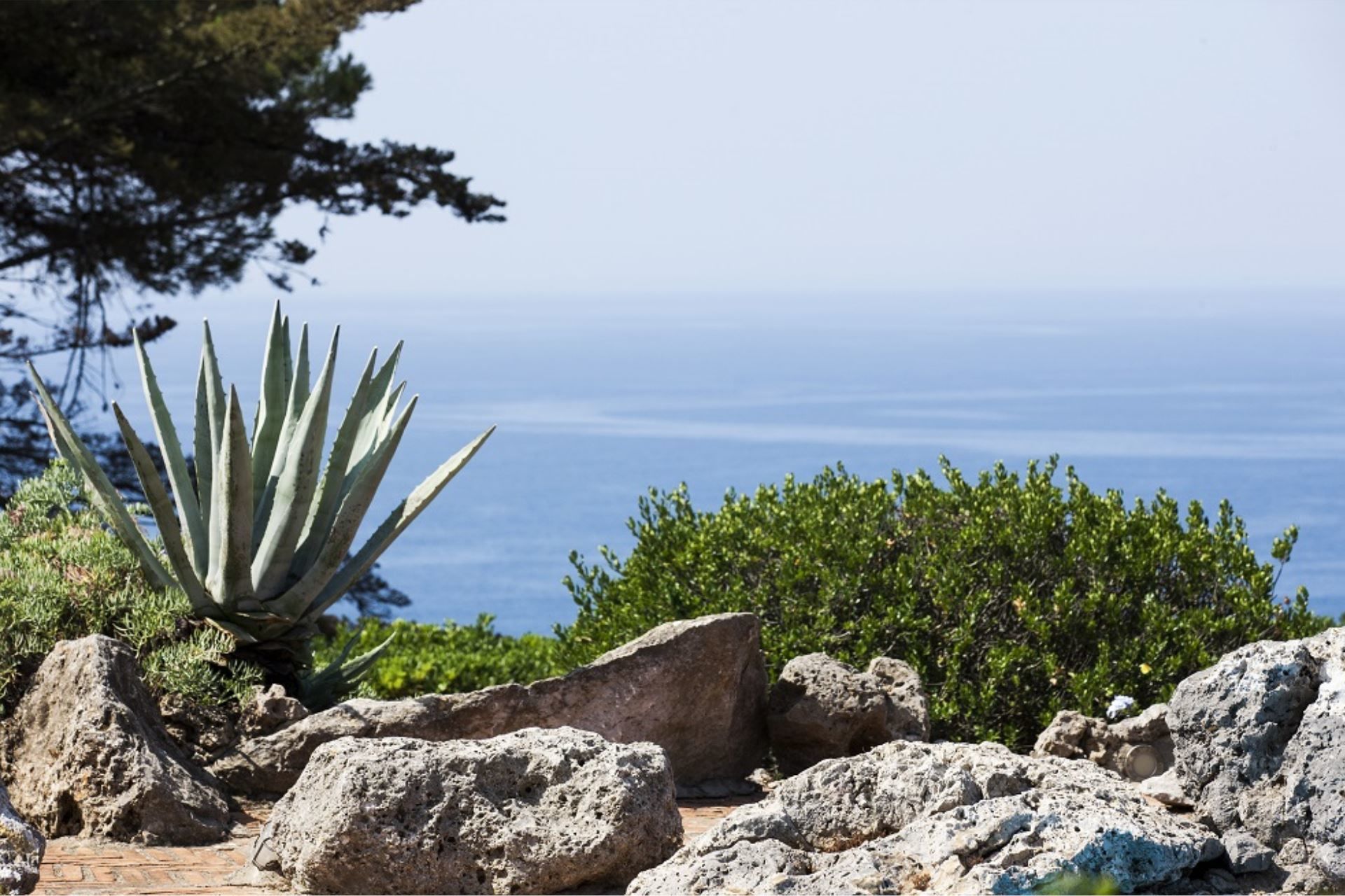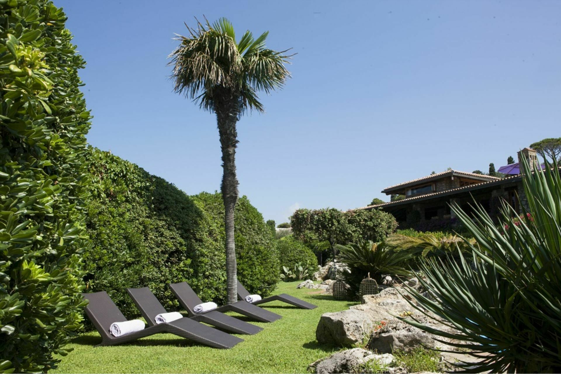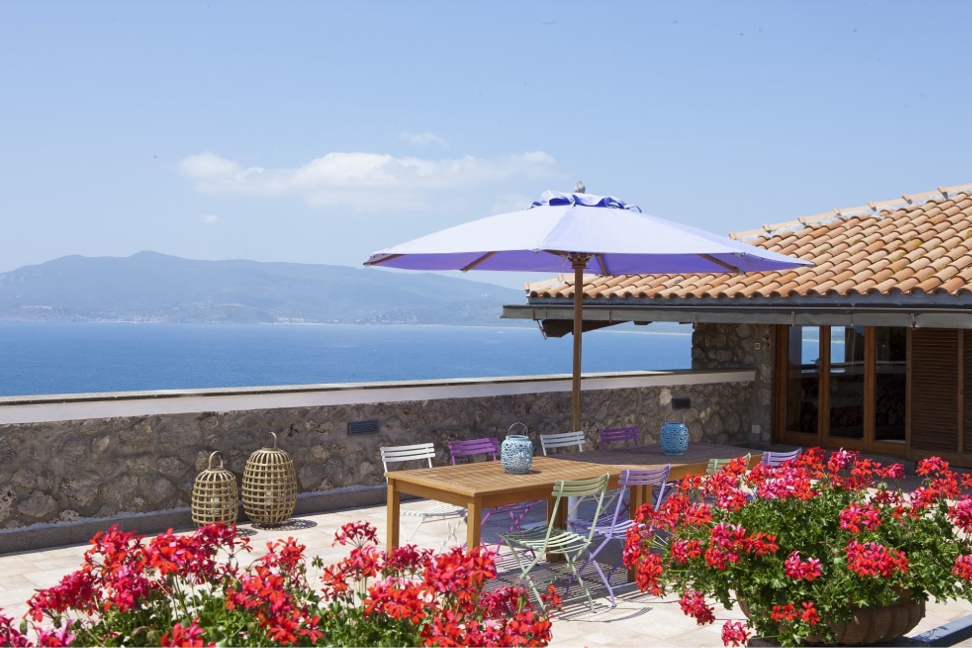 The Villa also has a large veranda, furnished with a sofa and armchairs, a dining table and a barbecue, for delicious meals in the open air, enjoying the wonderful panorama of the sea, sheltered from the sun. Two staff members live in the property and they will be available to guests.
