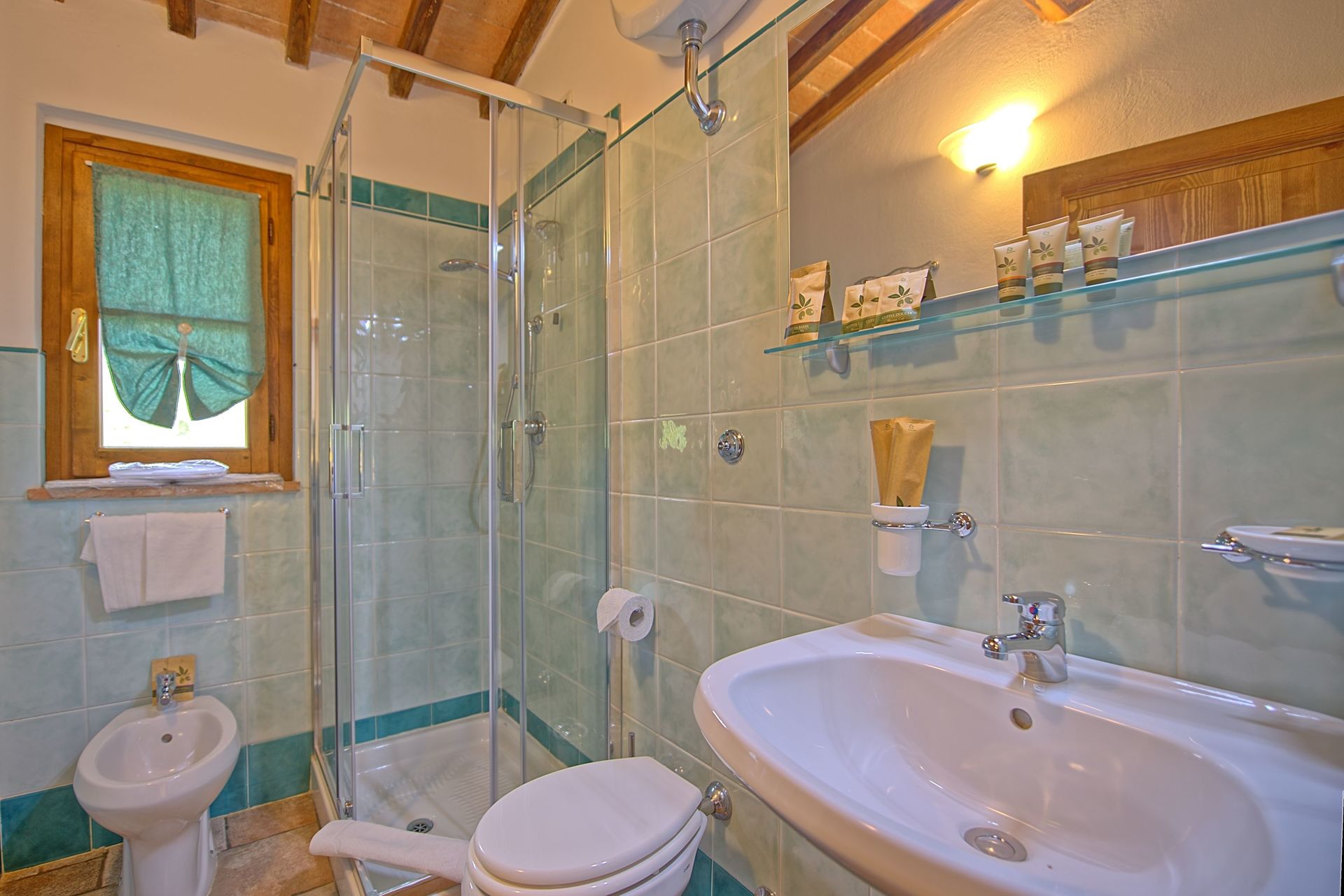 Første sal: entre med adgang til det udvendige, soveværelse med dobbeltseng, badeværelse med bruser, soveværelse med en enkeltseng.