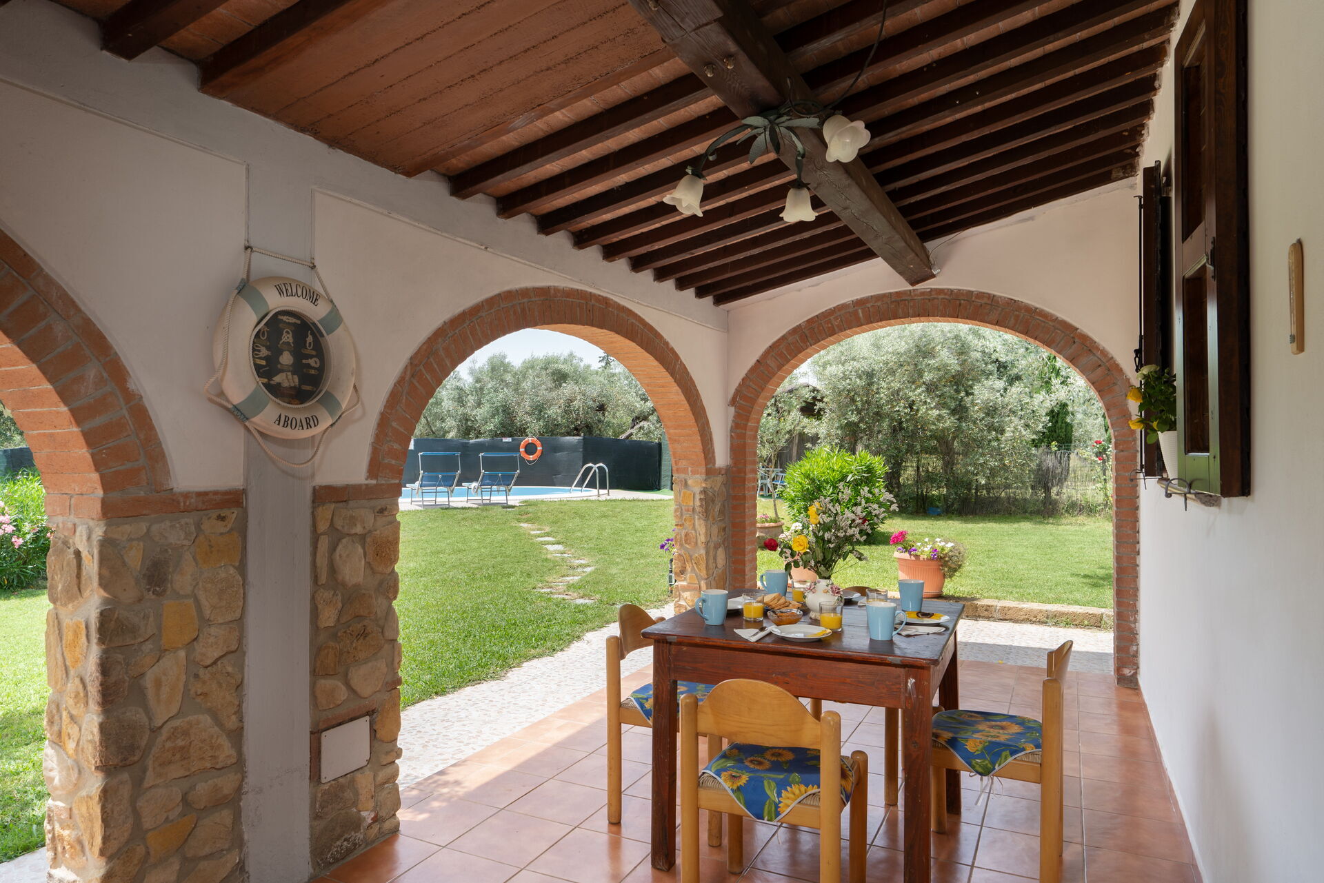 Ved ankomst vil I blive budt velkommen af ejeren eller repræsentanten og I vil finde en dejlig ren og velholdt ejendom med udsigt over bakkerne perfekt til en rolig ferie i Toscana. Til jeres store glæde vil I finde en privat pool, hvor I kan køle ned, mens I nyder en dejlig kold drik efter en travl dag med museumsbesøg. Til jeres store nydelse er der på ejendommen gårdhave og grill. Der er et køkken inkluderet mikroovn, brødrister, komfur og køleskab, samt, , samt masser af service og bestik til op til fire personer. Hvis I foretrækker at spise 'al fresco', er der en fuldt møbleret gårdhave, hvor I kan nyde vejret, mens I spiser udendørs.
