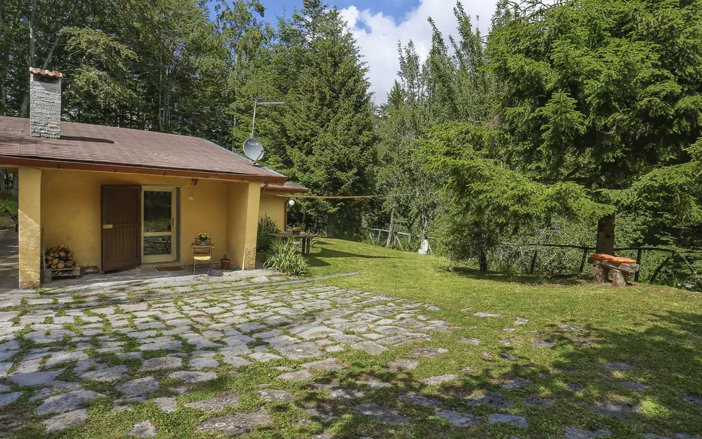 Corfino 12 km fra Silano: Rustikt, enkelt hus "Al Faggio", renoveret i 2019, omgivet af træer og græsmarker. 12 km fra bymidten af Sillano, 6 km fra centrum af Corfino, 22 km fra bymidten af Castelnuovo di Garfagnana, rolig beliggenhed ved bakke, i en blind vej, i det grønne, i skoven. Til alene benyttelse: grund 500 m2, have i forskellige niveauer med planter og træer, græsmark, parkeringsplads på grunden. Indkøbsforretning 6 km, busstoppested 6 km, svømmehal 15 km.