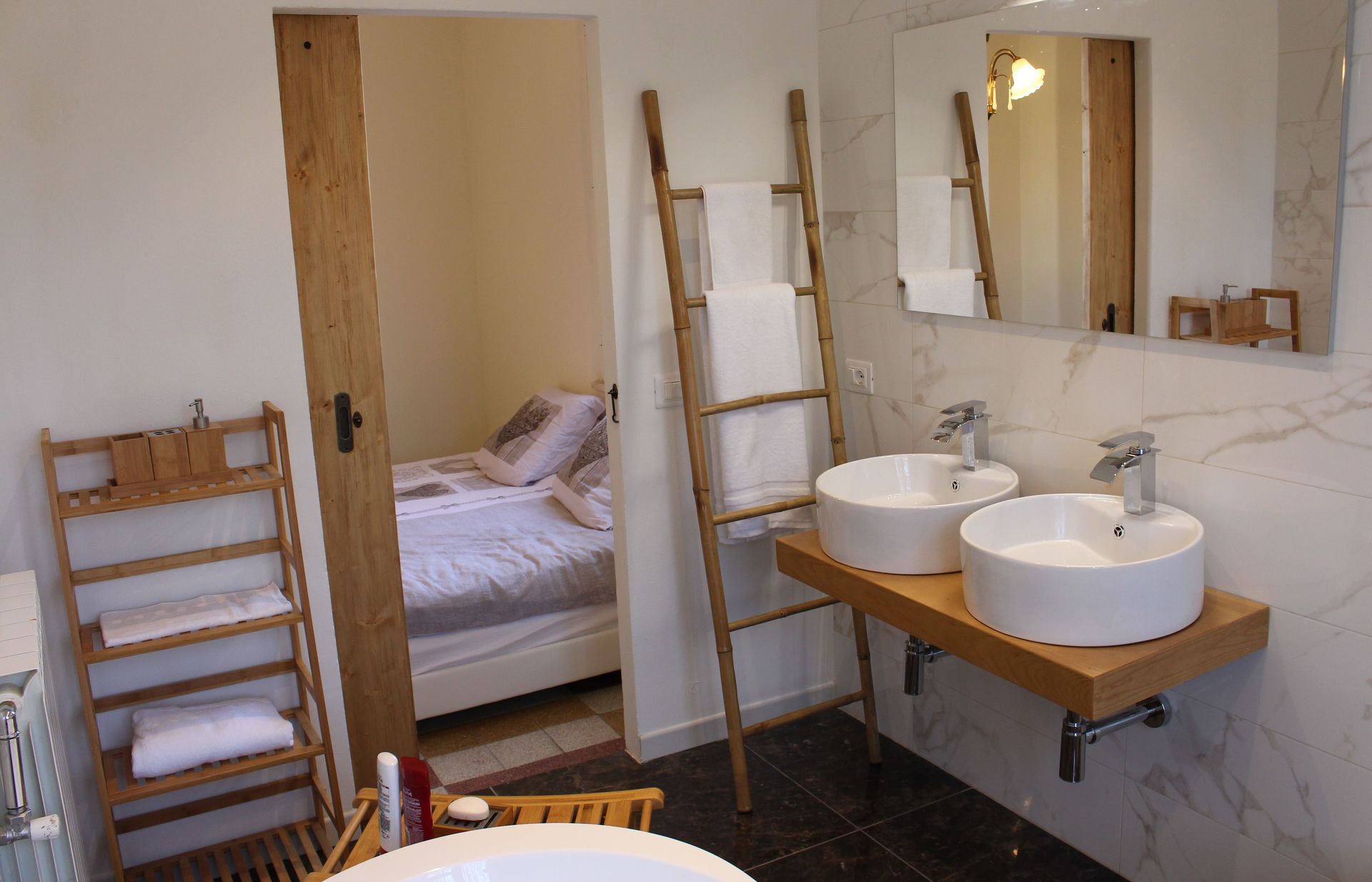 Soveværelse med bad 1: fransk seng, WIFI internet, to vaske, bidet, badekar.