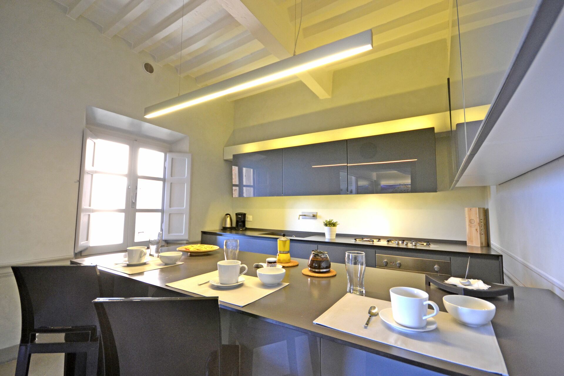 Køkken: veludstyret køkken, opvaskemaskine, køleskab, fryser, mikroovn, ovn, brødrister, italiensk kaffemaskine, amerikansk kaffemaskine, WIFI internet, klimaanlæg.