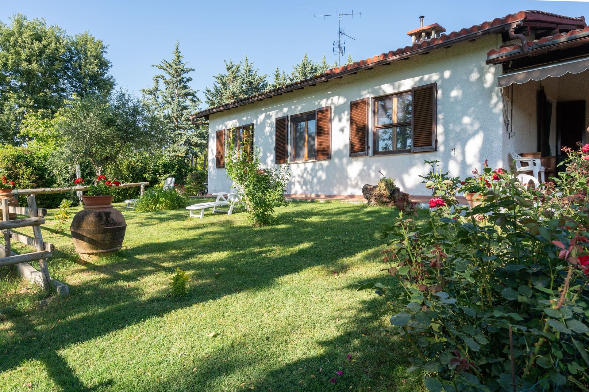 Når I ankommer, vil I møde en dejlig ren velholdt ejendom med udsigt over bakkerne ideel til behagelig ferie i Toscana. Uanset hvordan I tilbringer dagene - med museumsbesøg, sightseeing, shopping eller bare ved at køre rundt på landet, så kan I slappe af med familie og venner ved poolen, når I kommer hjem, hvilket er en perfekt måde at afslutte endnu en dejlig dag på i Toscana. Udendørs vil I også finde barbecue og gårdhave. At spise med venner og familie er en stor del af den toskanske kultur. Benyt det velekviperede køkken til madlavning med lokale produkter, når du er på ferie. Køkkenet indeholder kaffemaskine, mikroovn, brødrister, komfur og køleskab, samt, masser af service og bestik til op til seks personer. Spis 'al fresco' som en ægte toskaner. Den fuldt møblerede gårdhave er det perfekte sted for at nyde sit måltid, familien og det fine toskanske vejr.
