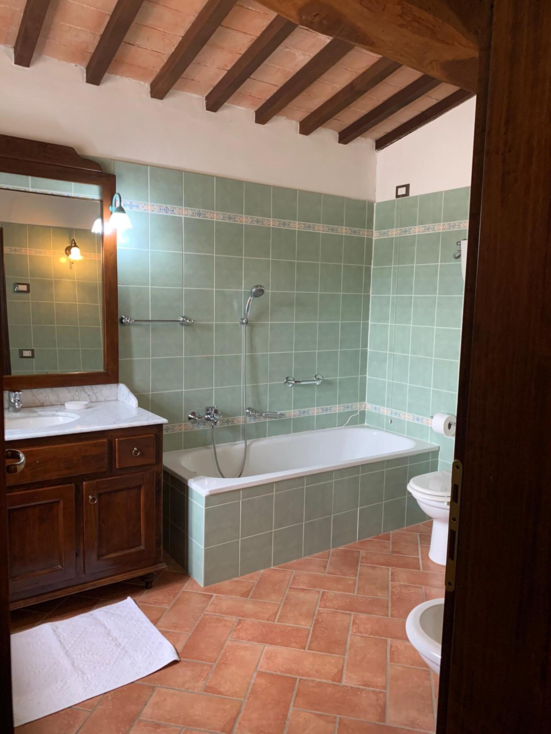 Når I ankommer, vil I møde en dejlig ren velholdt ejendom perfekt til afslappende ferie i Toscana. Til jeres store nydelse vil I finde en privat pool, hvor I kan køle ned, mens I nyder en dejlig kold drik efter en travl dag med shopping. Udenfor vil I finde barbecue og gårdhave. Hvis I nyder at lave mad til familie og venner så er der et veludstyret køkken inkluderet mikroovn og køleskab, samt, , samt masser af service og bestik til op til 14 personer.