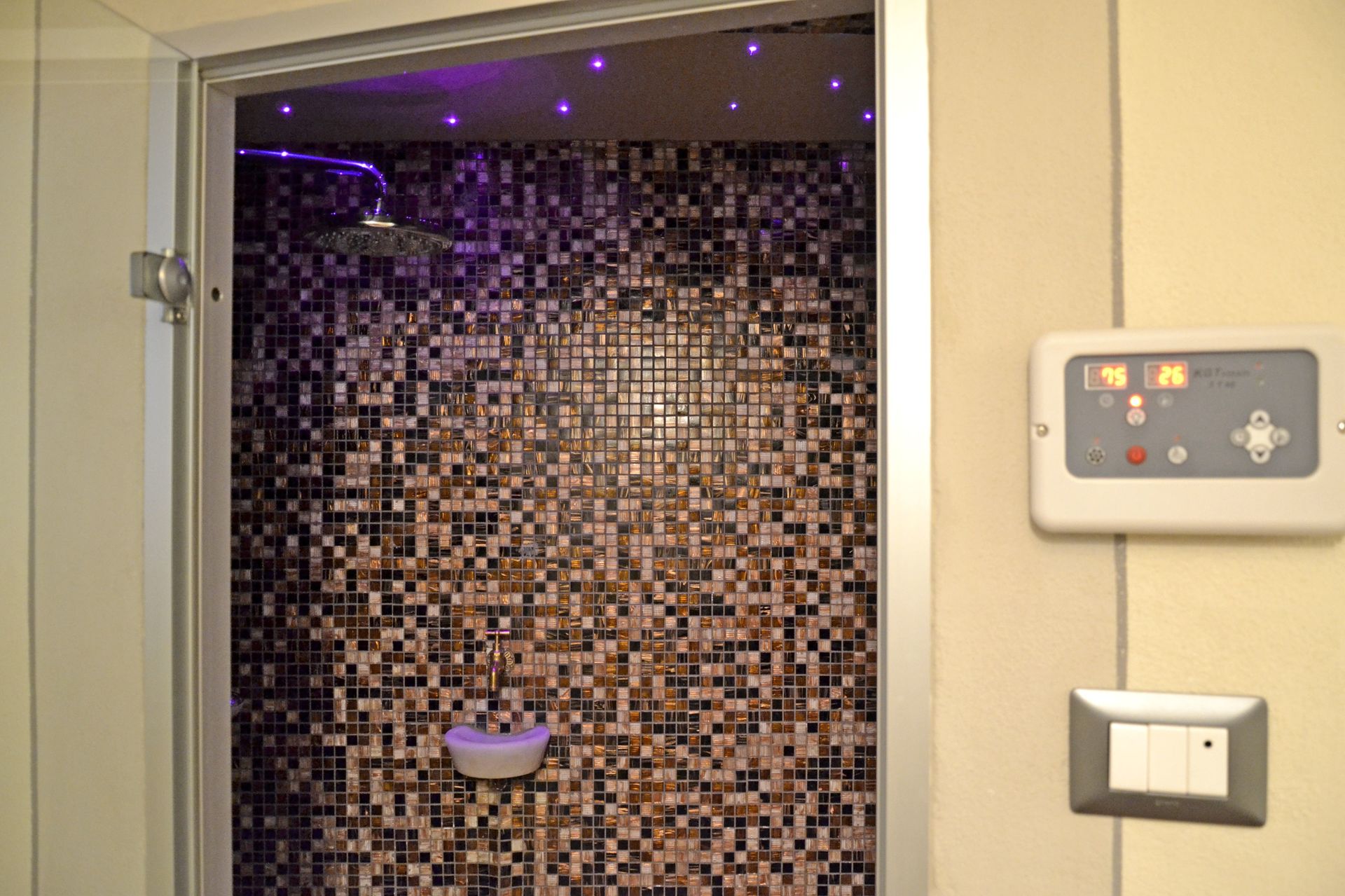 Bruser er forsynet med tyrkisk bad, baggrundsmusik og kromoterapi.