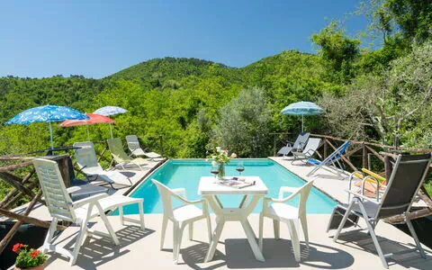 Bondegård "Il Castagneto", 400 meter over havets overflade. 2 huse i resortet. 8 km fra bymidten af Rufina, 16 km fra centrum af Pontassieve, 35 km fra bymidten af Firenze, isoleret, rolig beliggenhed, i det grønne, i skoven. Til medbenyttelse: have 1 ha (ikke hegnet ind). Til alene benyttelse: pool (oppsted svømmebassin) (8 x 5 m, 150 - 150 cm dyb, Sæsonbestemt tilgængelighed: 03.Maj. - 27.Sep.). Havemøbler, grill. I huset: centralvarme, vaskemaskine (til medbenyttelse), Opvarmningen betales lokalt, opvarme kun tilgængelig fra 01.Nov. - 07.Apr.. Smal tilkørsel til til huset (500 m natursti). Parkeringsplads på grunden. Indkøbsforretning 8 km, supermarked 8 km, busstoppested 6.6 km, badesø "Lago di Bilancino" 48 km. Nærliggende attraktioner: Dicomano 12 km, Vicchio 27 km, Fiesole 33 km. Bemærk venligst: bil anbefales. Ejer bor på sammen grund.