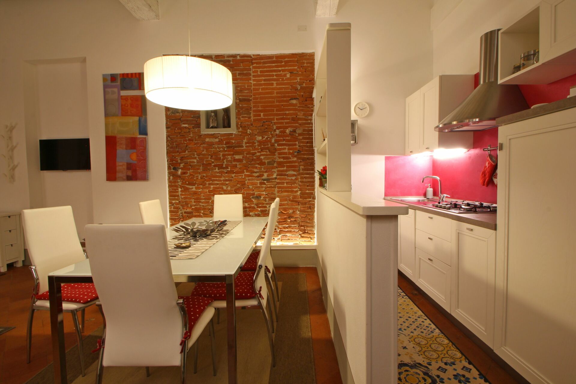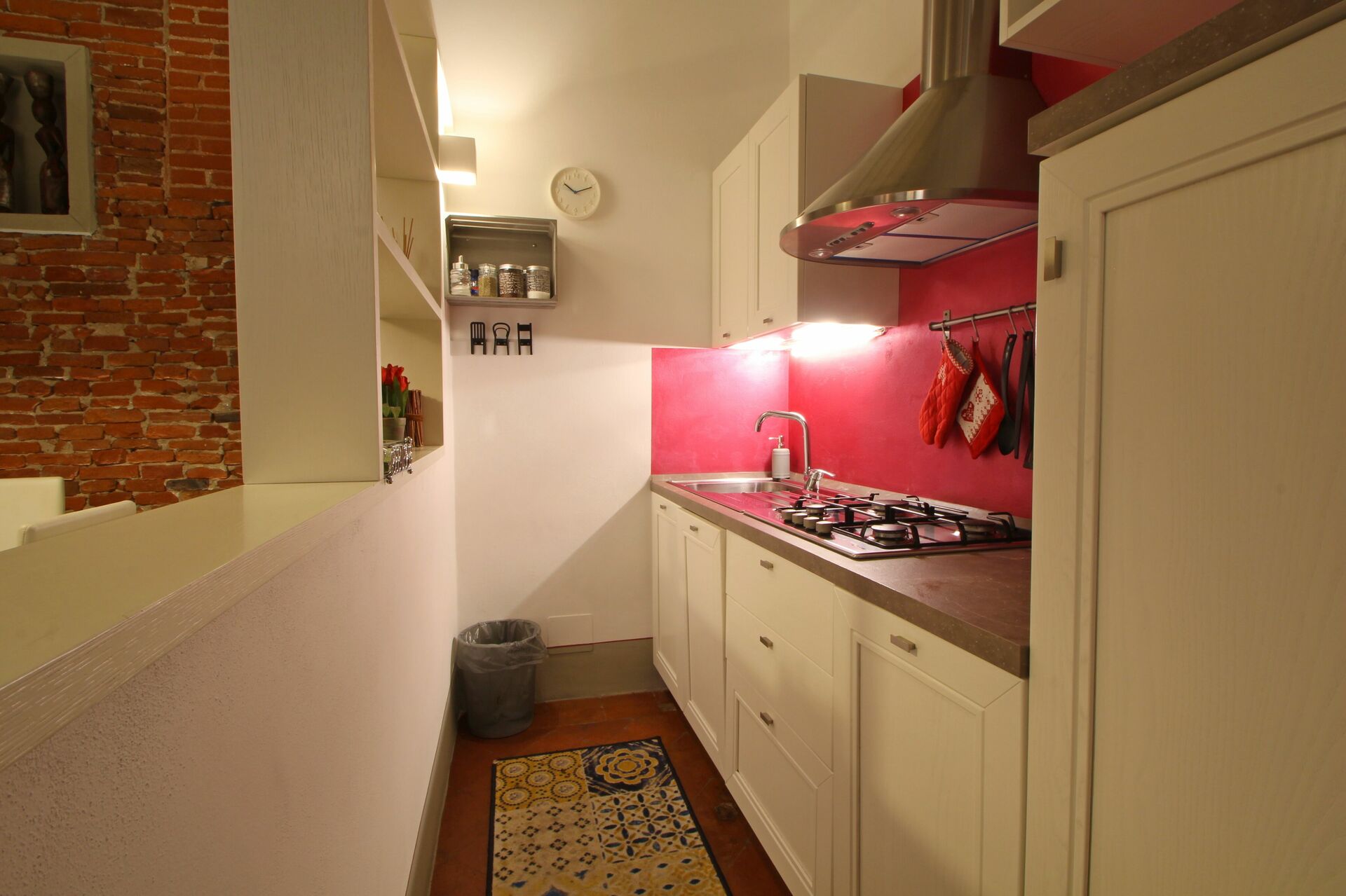 Når I ankommer, til Lucca City Apartment vil I finde en flot ren og velholdt ejendom ideel til en behagelig ferie i Toscana. Den store gevinst ved at leje en feriebolig i stedet for flere hotelværelser er muligheden for at slappe af med familie og venner efter en travl dag. Nyd en middag sammen akkompagneret med lidt lokal vin for at afslutte dagen. At spise med venner og familie er en kæmpe del af den toskanske kultur. Benyt køkkenet til madlavning med lokale produkter, når du er på ferie. Køkkenet indeholder kaffemaskine, brødrister og køleskab, samt, masser af service og bestik til op til fire personer.