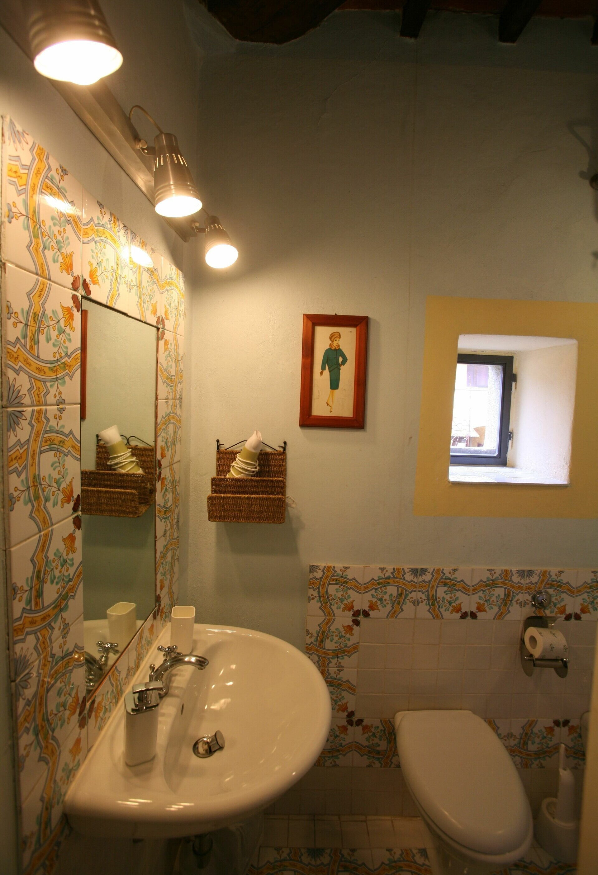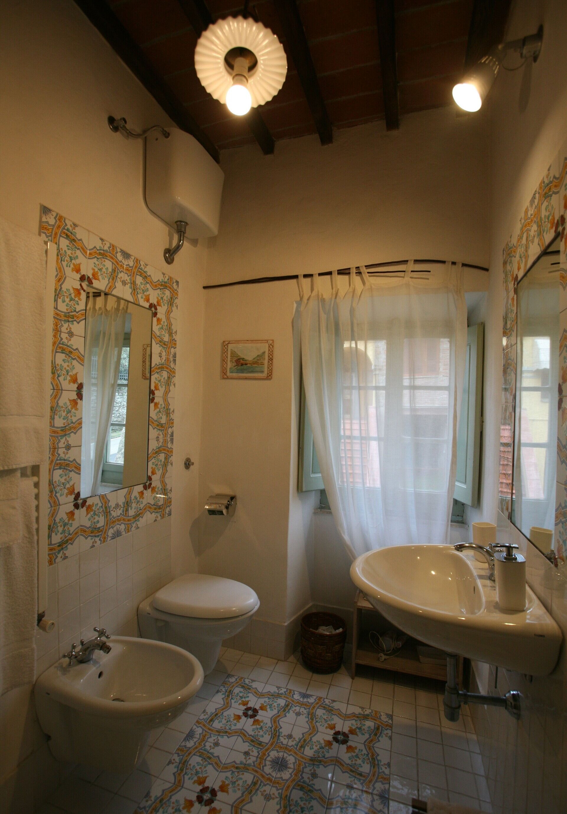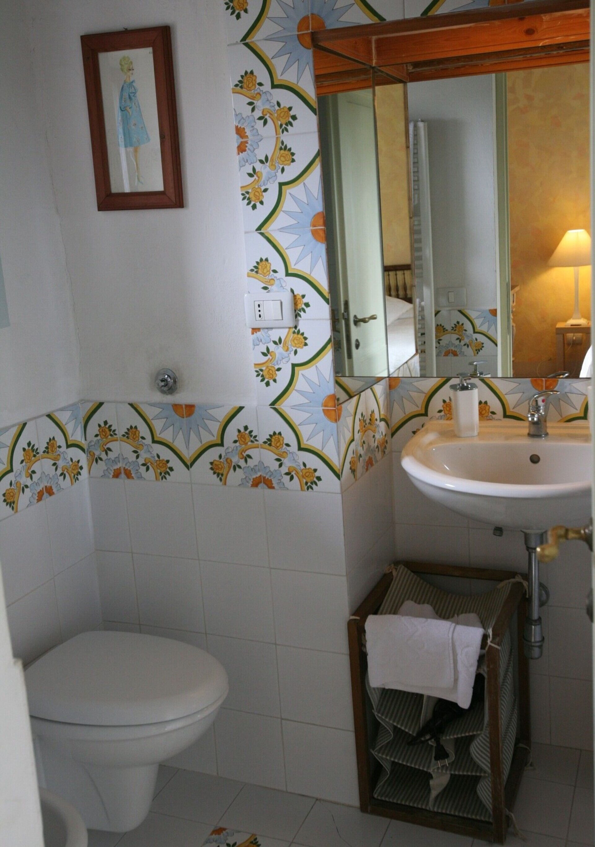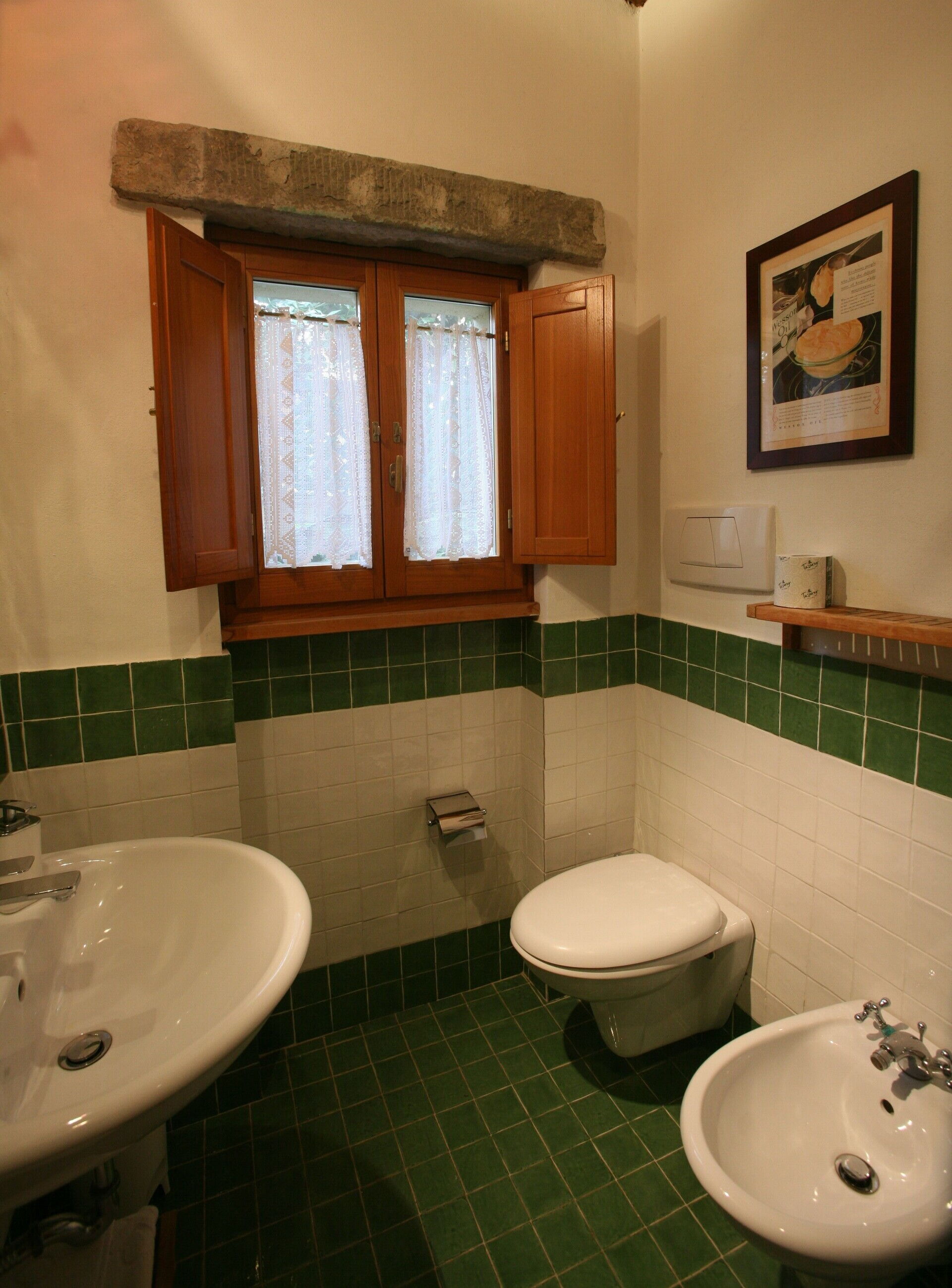 Badeværelse: vask, wc, bidet, bruser, hårtørrer.
