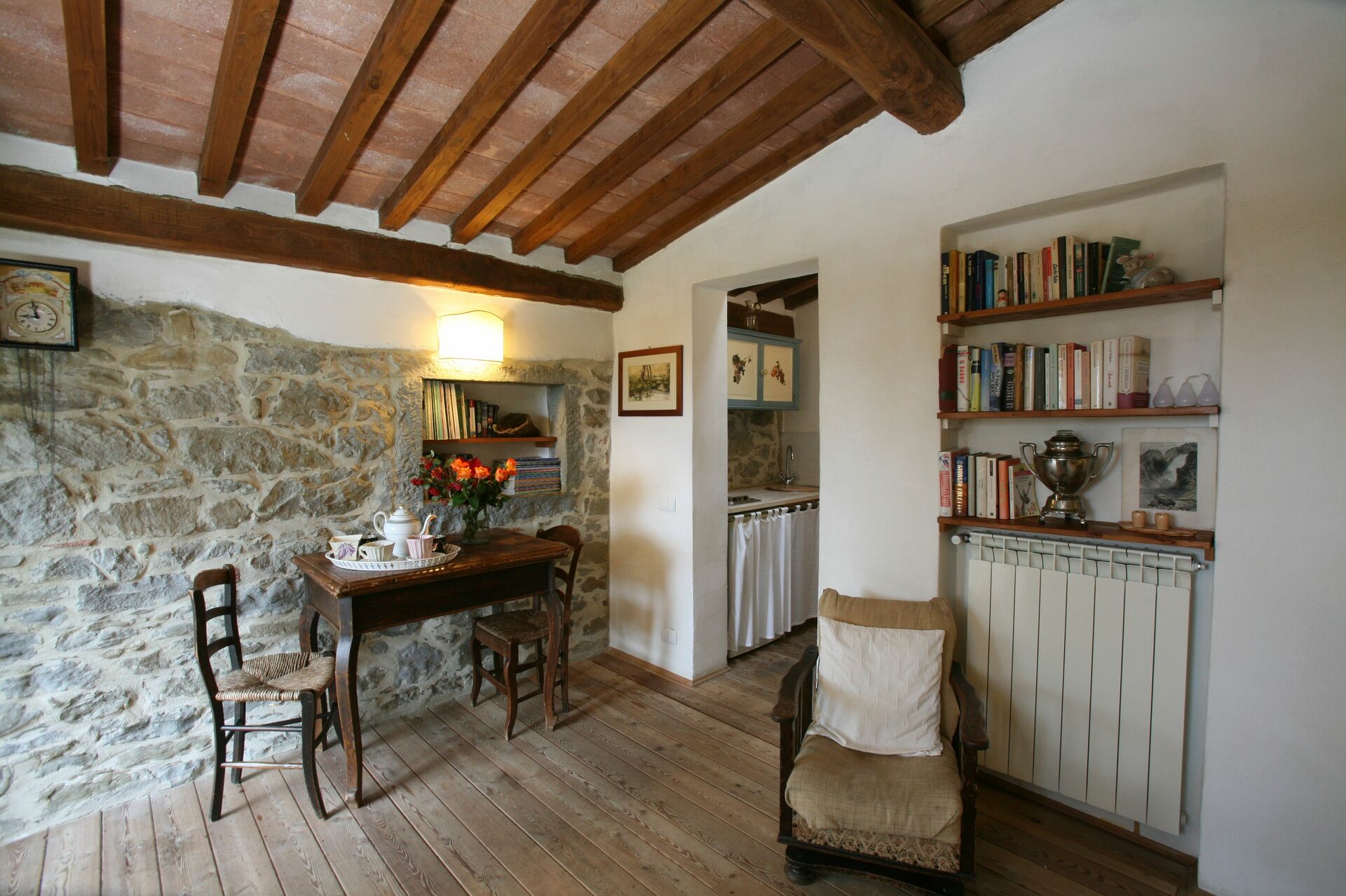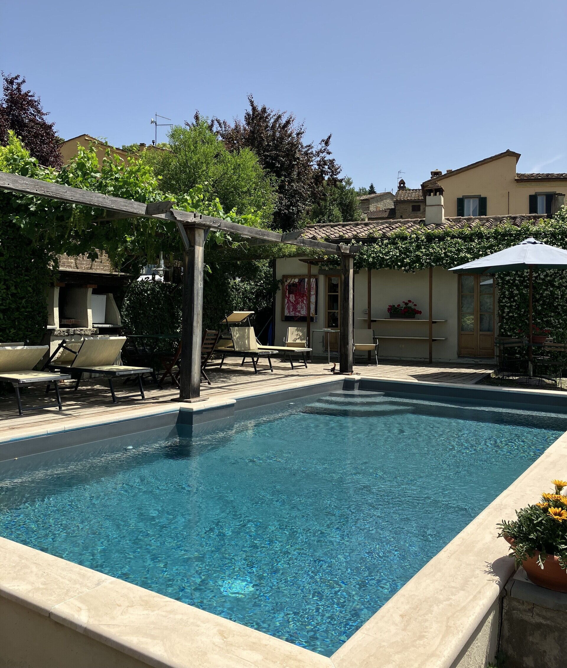 Ved ankomst vil I blive modtaget af ejeren eller repræsentanten og I vil finde en dejlig ren og velholdt ejendom med udsigt over bakkerne ideel til en fredelig ferie i Toscana. Til jeres store nydelse vil I finde en privat pool, hvor I kan slappe af, mens I nyder en dejlig kold drik efter en travl dag med shopping. Udenfor vil I også finde grill og gårdhave. Hvis I nyder at lave mad til familie og venner så er der et veludstyret køkken inkluderet kaffemaskine, brødrister, komfur og køleskab, samt, , samt masser af service og bestik til op til 21 personer.