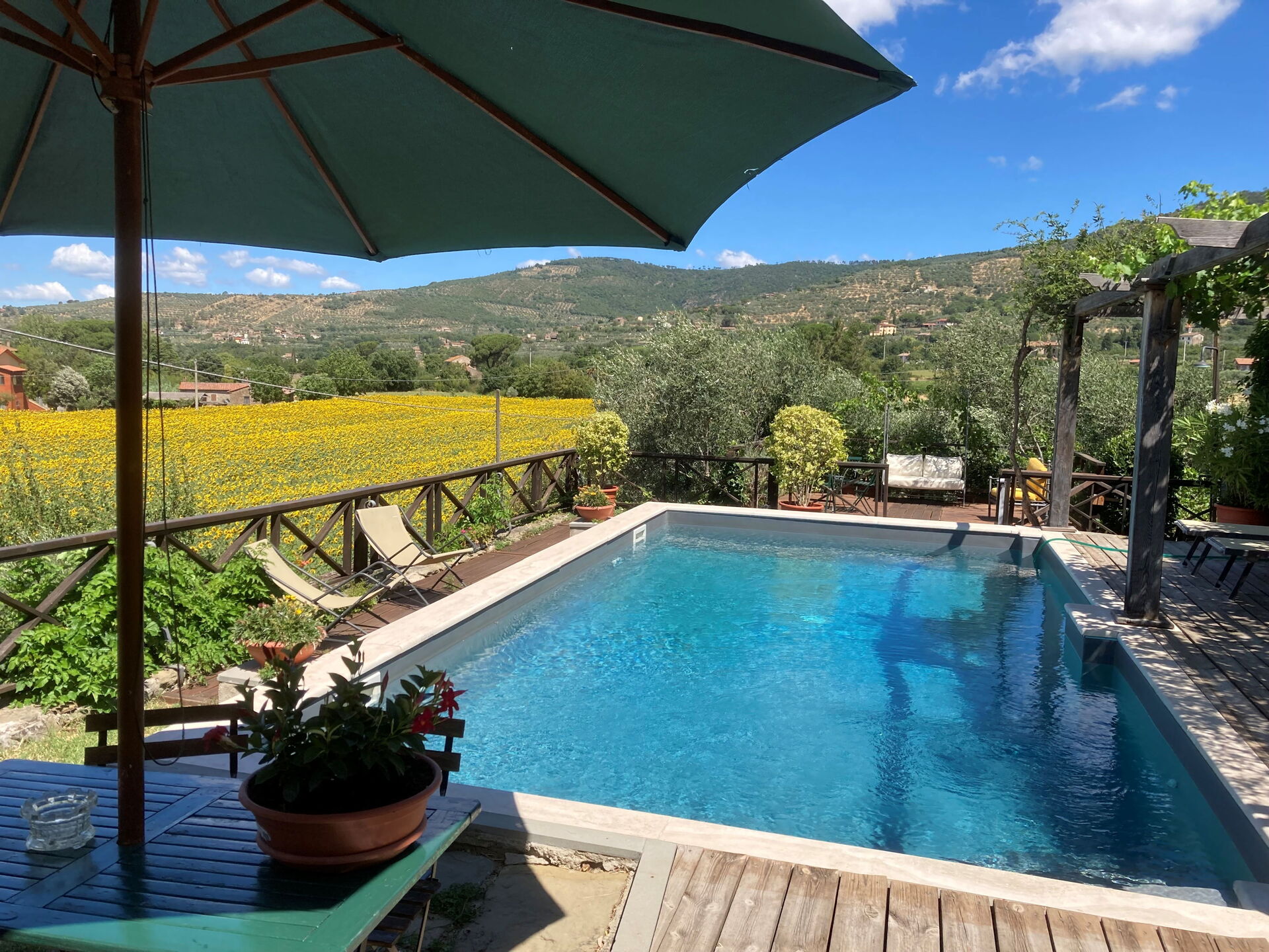 I had planned a celebration with 10 friends and family coming from all over the US to Tuscany, so I was understandably anxious about everything going well at a place I'd never seen. All my dreams came true, as not only was the location as described and pictured in the Vrbo listing, the property owner could not have done a better job. The reality exceeded the pictures and the location (5 min drive from Cortona as well as the Camucia-Cortona train station, which came in really handy) turned out to be perfect. I could go on for days about how happy I was with this property - suffice to say that if you are planning a large group gathering in Tuscany, you will NOT be disappointed with Il Sole del Sodo!!