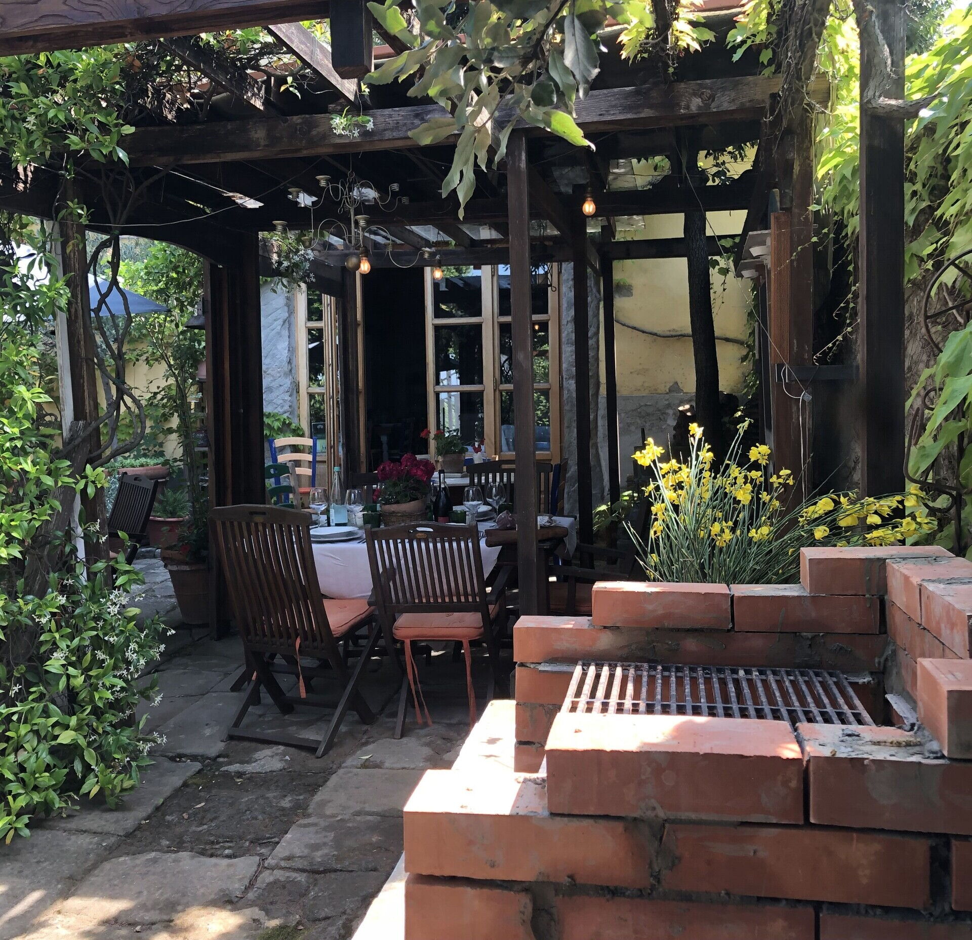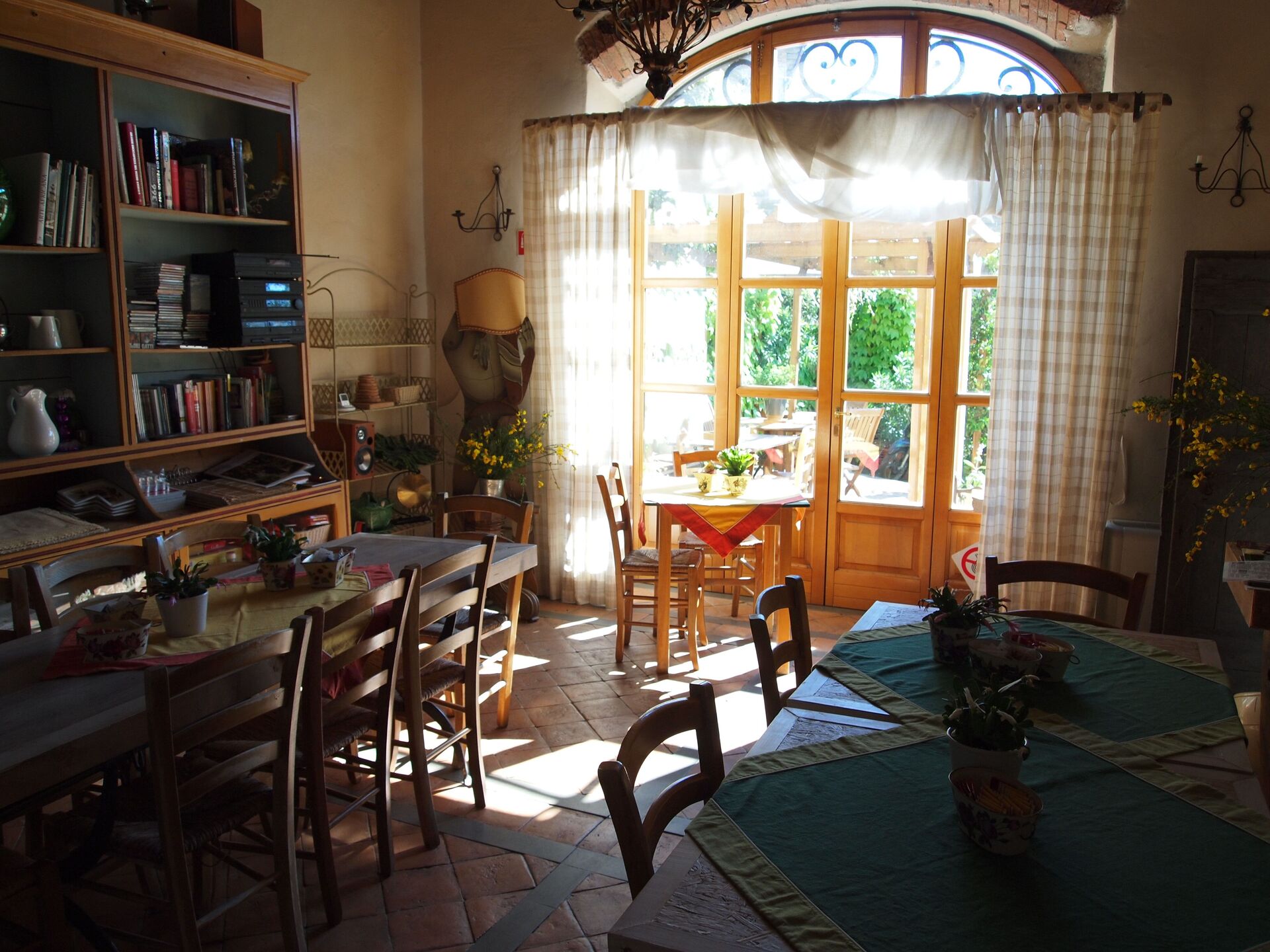 Spisestue (27 m2): tre spiseborde (personer: 21), lænestol, WIFI internet, høj stol, mobil ventilator, stereoanlæg, udgang til veranda.