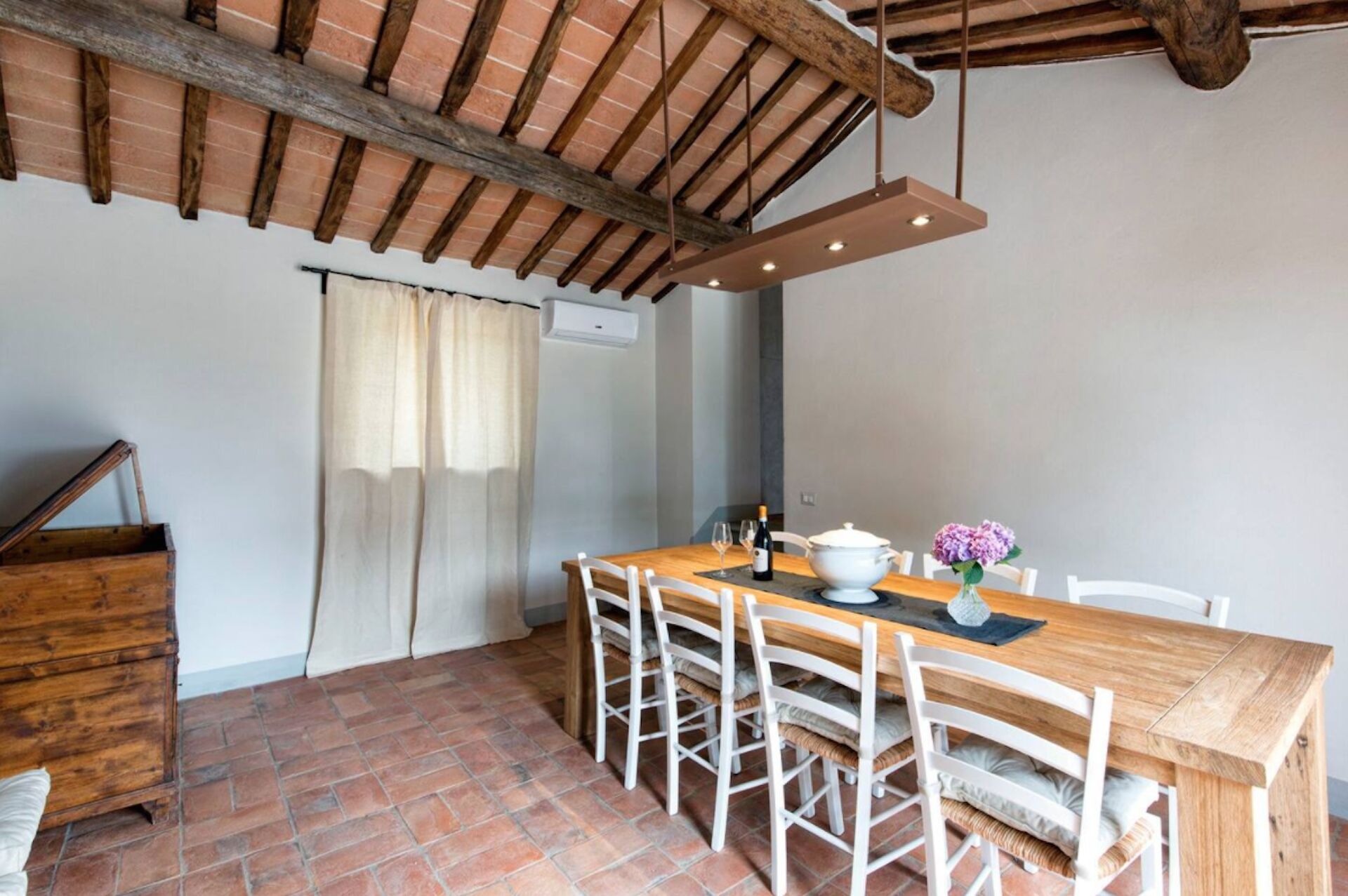 Ved ankomst vil I blive modtaget af ejeren eller repræsentanten og I vil finde en dejlig ren og velholdt ejendom perfekt til en fredelig ferie i Toscana. Efter en hektisk dag med sightseeing, er det dejligt at nyde lidt tid med venner og familie ved kanten af poolen med et glas vin - det er en perfekt måde at slappe af på sidst på dagen. Der er et køkken inkluderet kaffemaskine, brødrister, komfur og køleskab, samt, , samt masser af service og bestik til op til ti personer.