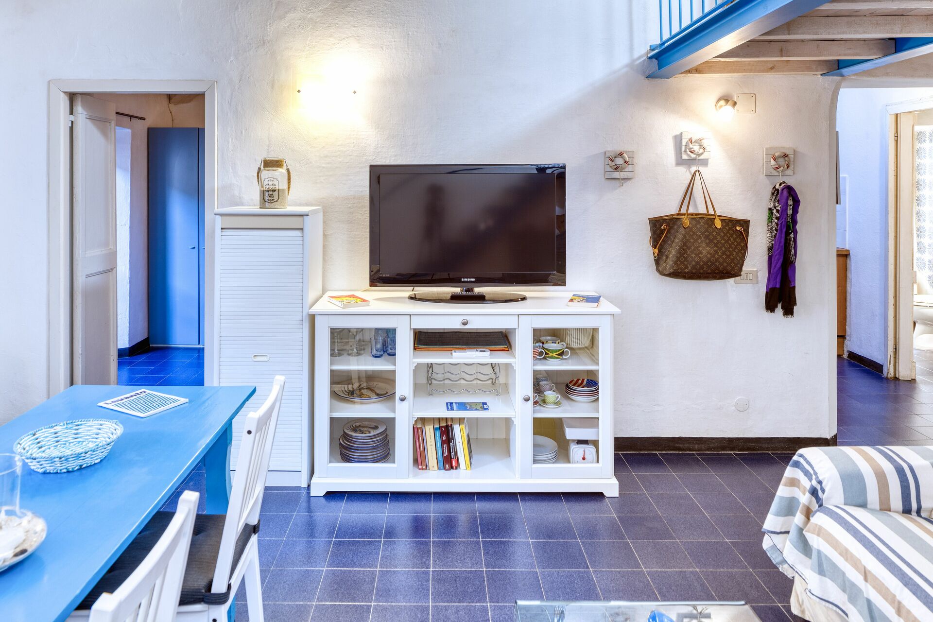 Stue med spisebord, sofa, tv (kun italienske kanaler).