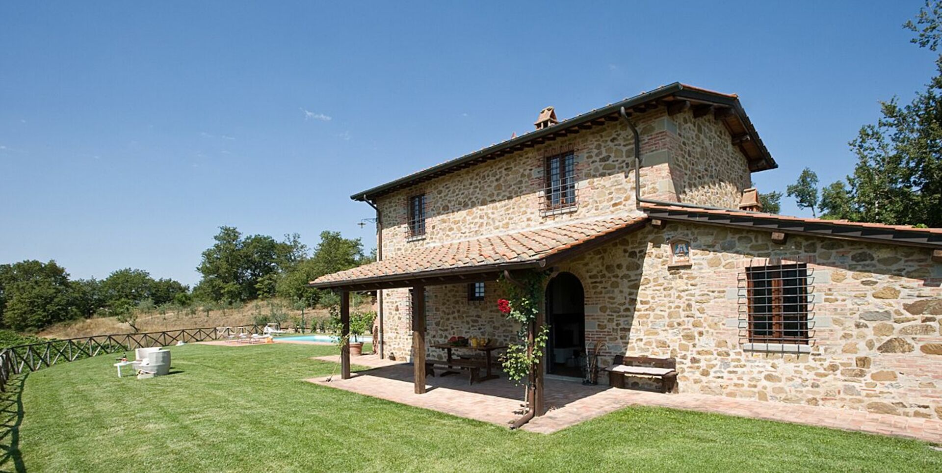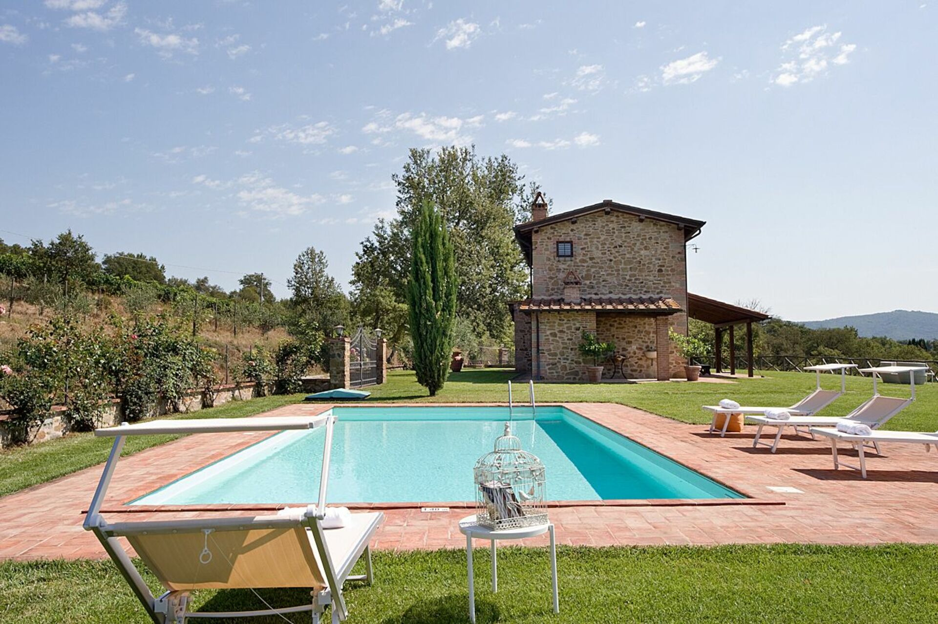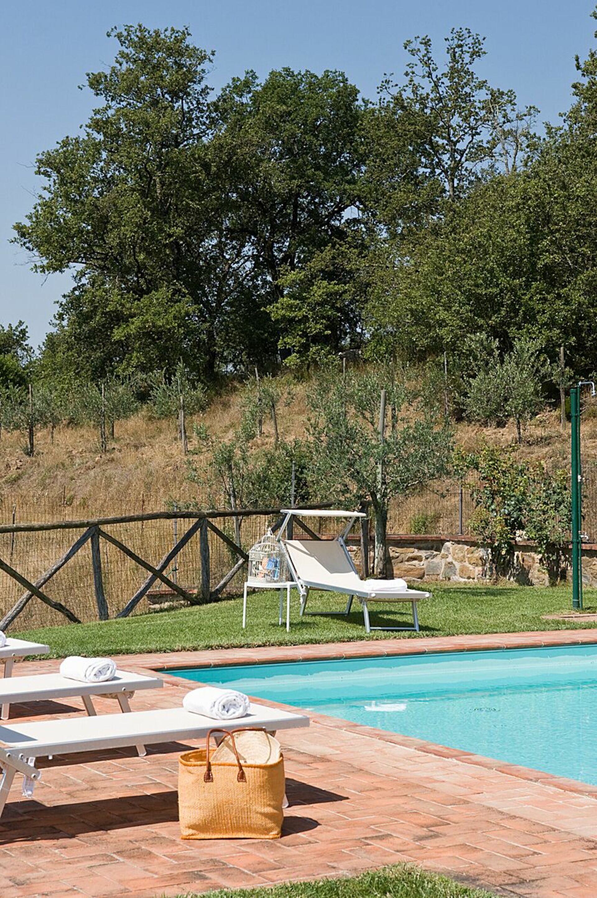 Ved ankomst vil I blive budt velkommen af ejeren eller repræsentanten og I vil finde en flot ren og velholdt ejendom med udsigt over bakkerne perfekt til en rolig ferie i Toscana. Til jeres store glæde vil I finde en privat pool, hvor I kan køle ned, mens I nyder en dejlig kold drik efter en hektisk dag med museumsbesøg. Hvis I nyder at lave mad til familie og venner så er der et veludstyret køkken inkluderet mikroovn, komfur og køleskab, samt, , samt masser af service og bestik til op til seks personer.