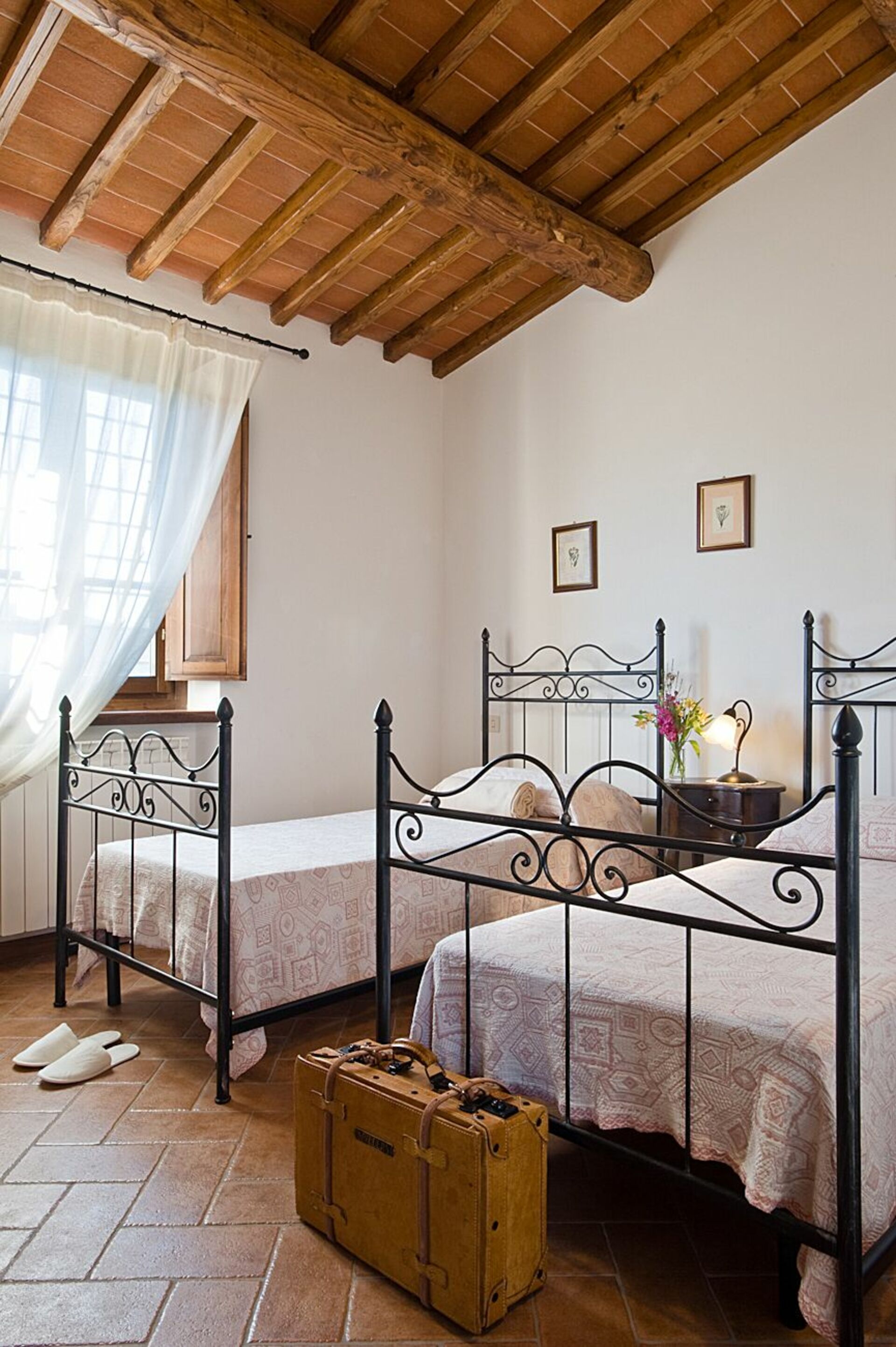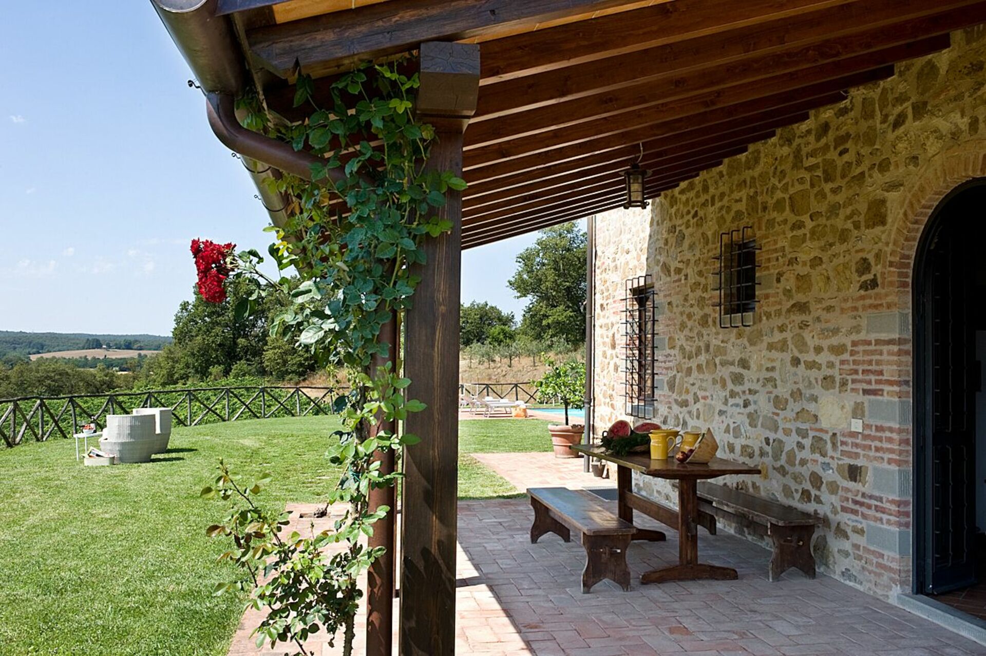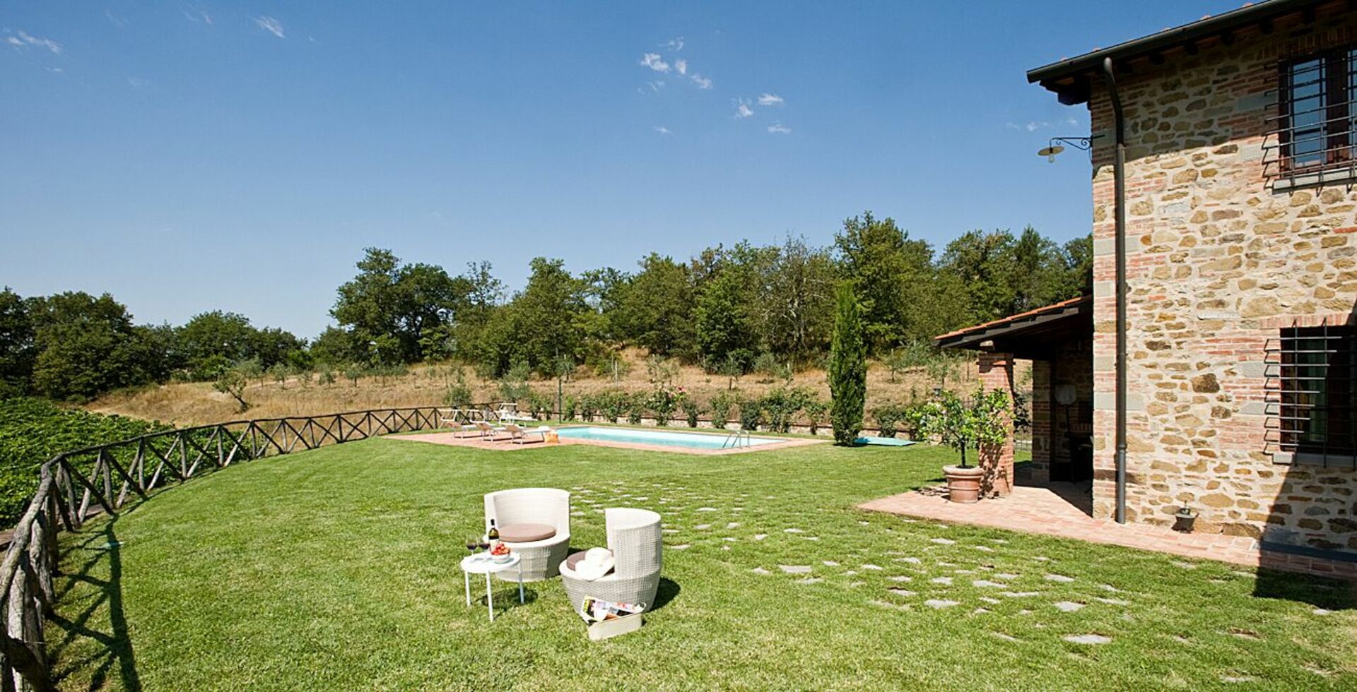 Ved ankomst vil I blive budt velkommen af ejeren eller repræsentanten og I vil finde en flot ren og velholdt ejendom med udsigt over bakkerne perfekt til en rolig ferie i Toscana. Til jeres store glæde vil I finde en privat pool, hvor I kan køle ned, mens I nyder en dejlig kold drik efter en hektisk dag med museumsbesøg. Hvis I nyder at lave mad til familie og venner så er der et veludstyret køkken inkluderet mikroovn, komfur og køleskab, samt, , samt masser af service og bestik til op til seks personer.