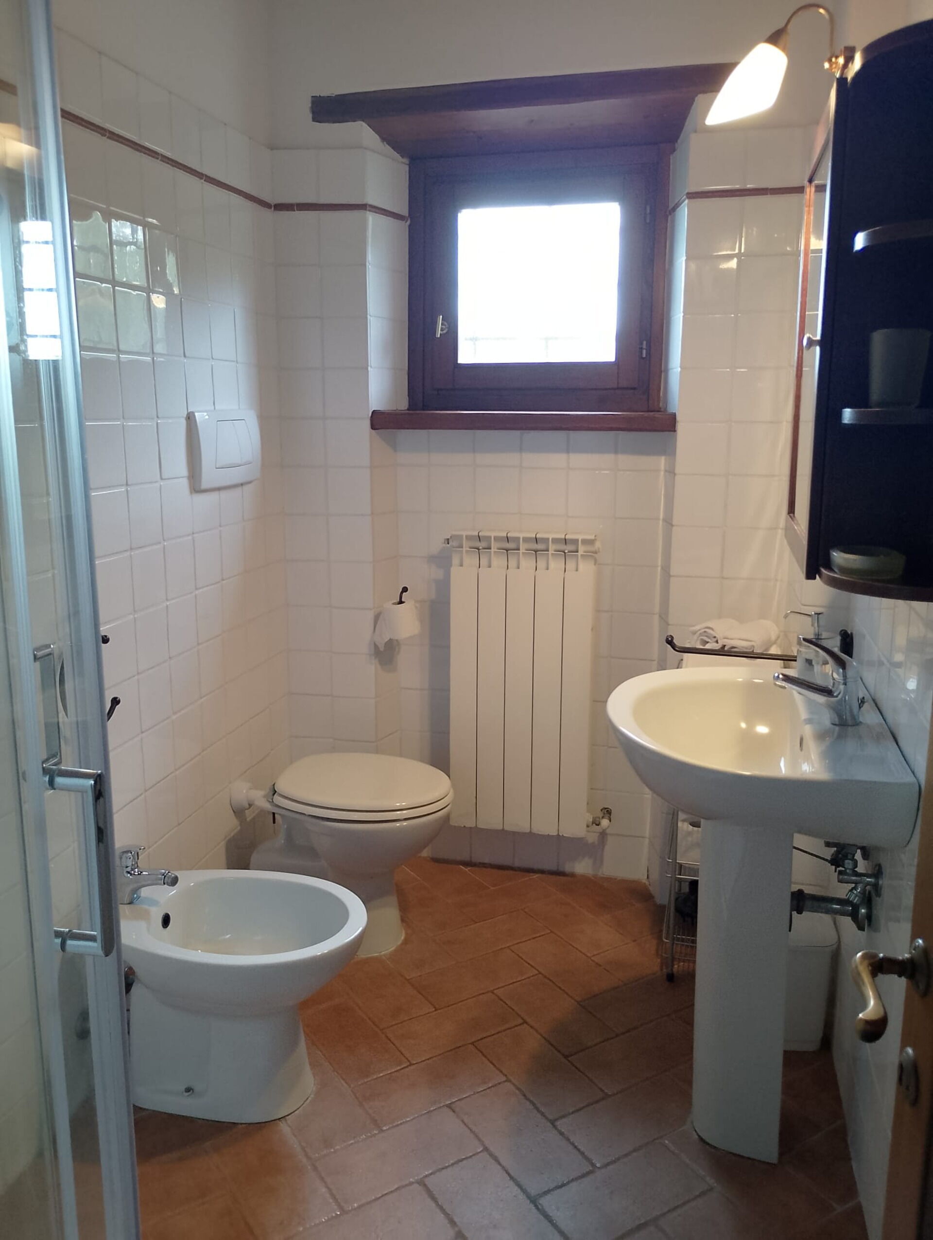 Badeværelse: vask, wc, bidet, bruser.