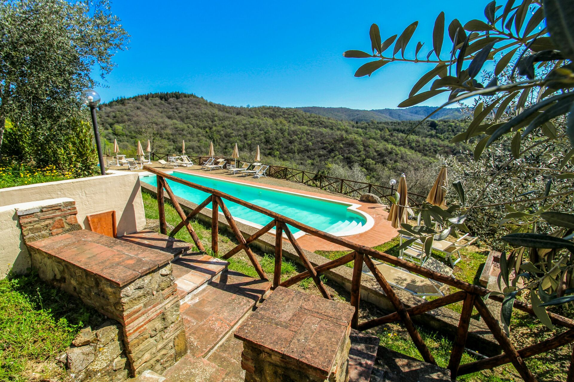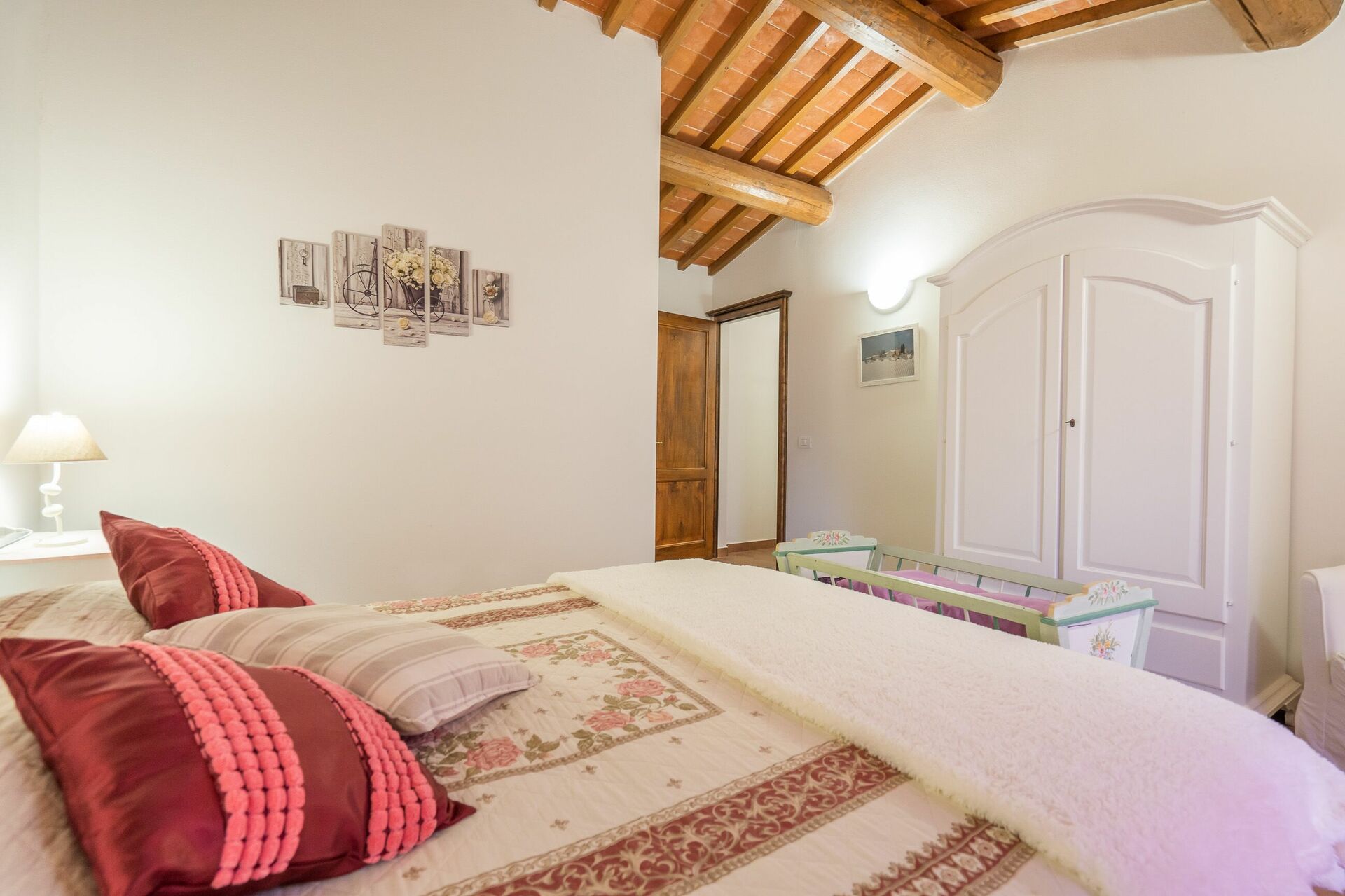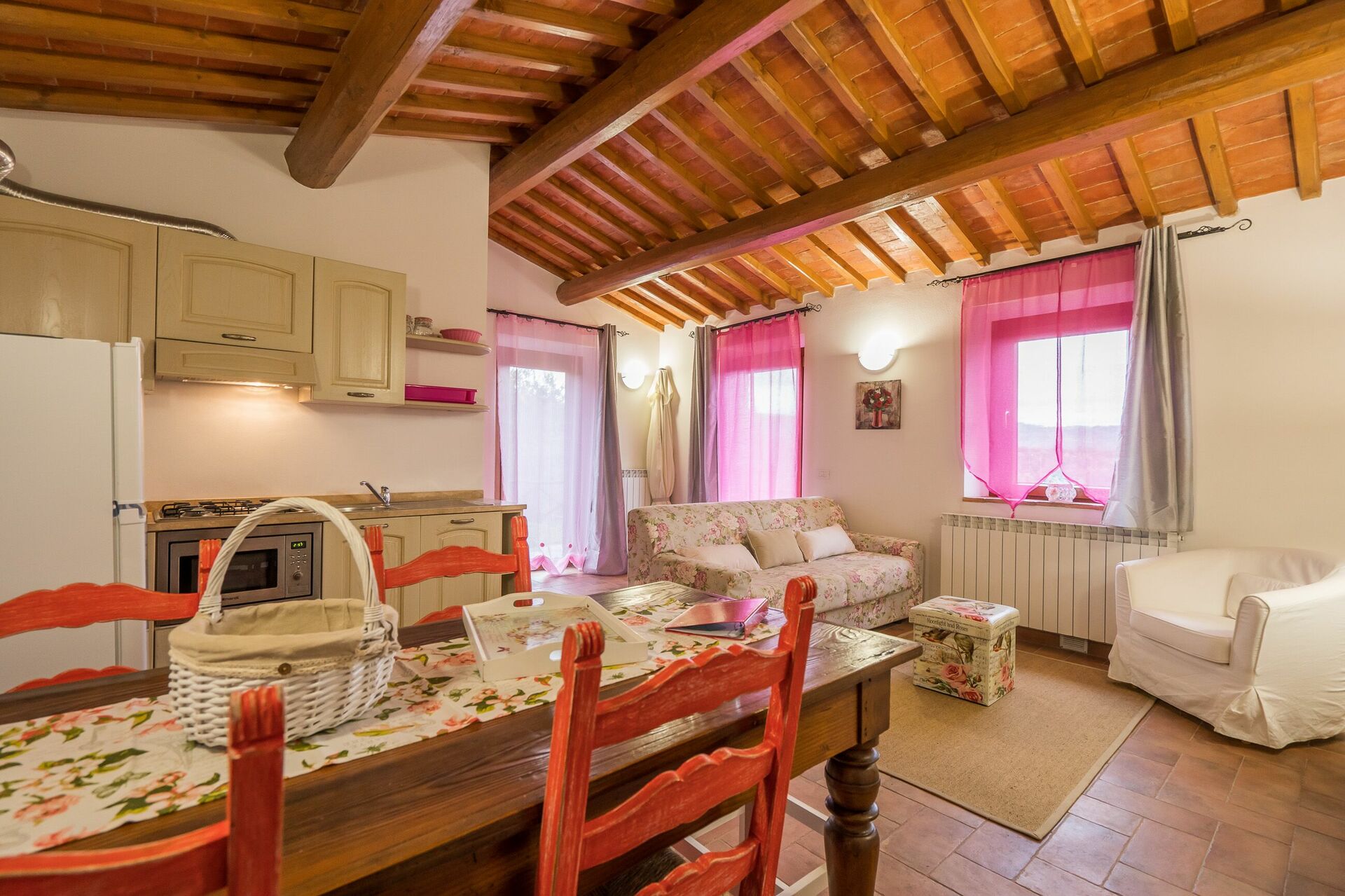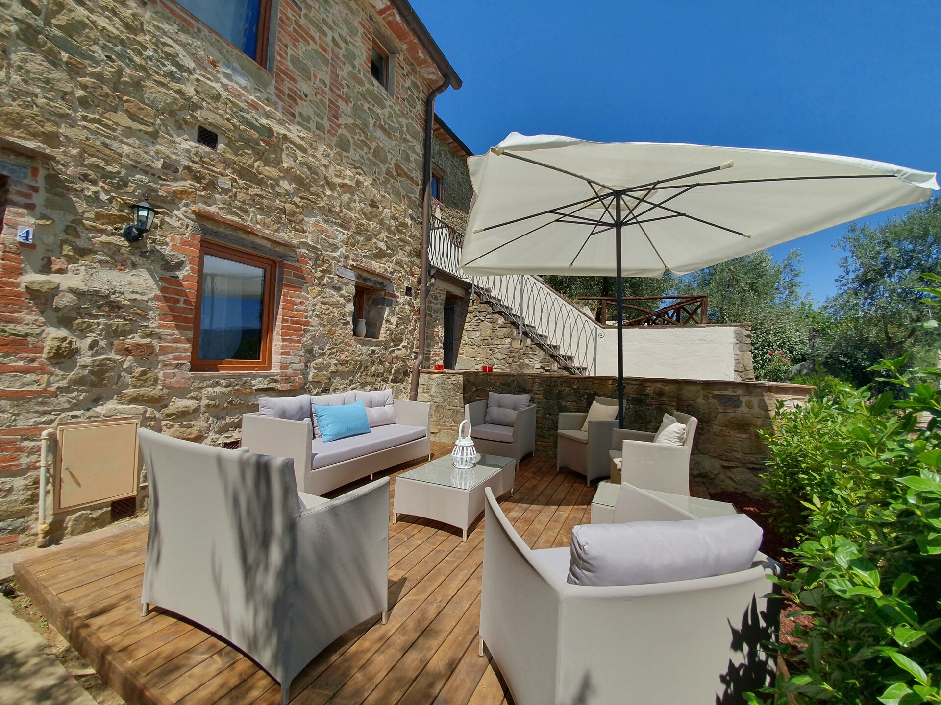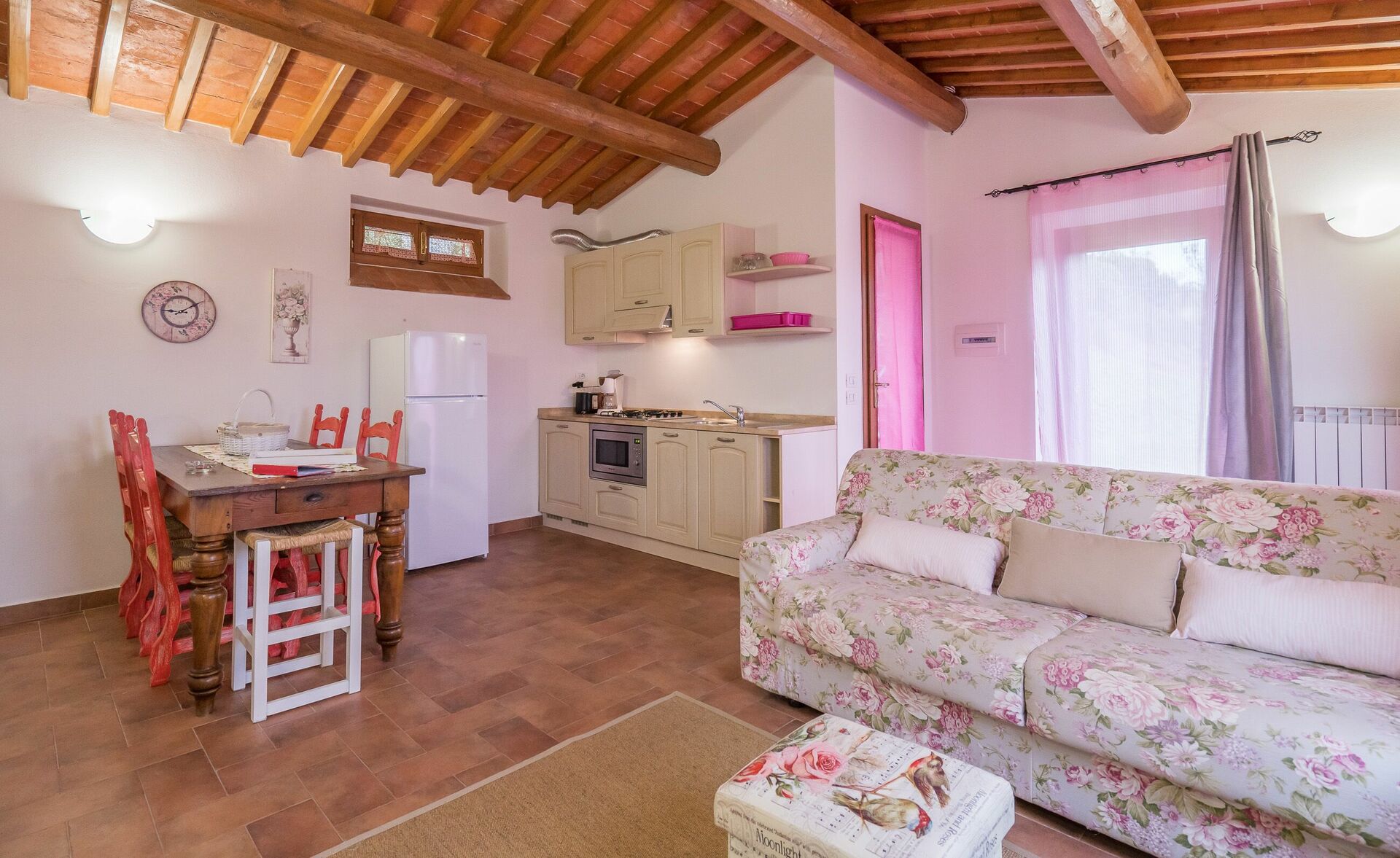 Ved ankomst vil I møde en fin ren velholdt ejendom med udsigt over bakkerne ideel til rolig ferie i Toscana. Til jeres store nydelse vil I finde en privat pool, hvor I kan køle ned, mens I nyder en dejlig kold drik efter en travl dag med shopping. At nyde et måltid med venner og familie er en stor del af den toskanske kultur. Benyt det velekviperede køkken til madlavning med lokale produkter, når du er på ferie. Køkkenet indeholder kaffemaskine, mikroovn, brødrister og køleskab, samt, masser af service og bestik til op til 22 personer. Spis 'al fresco' som en ægte toskaner. Den fuldt møblerede er det perfekte sted for at nyde sit måltid, familien og det dejlige toskanske vejr.