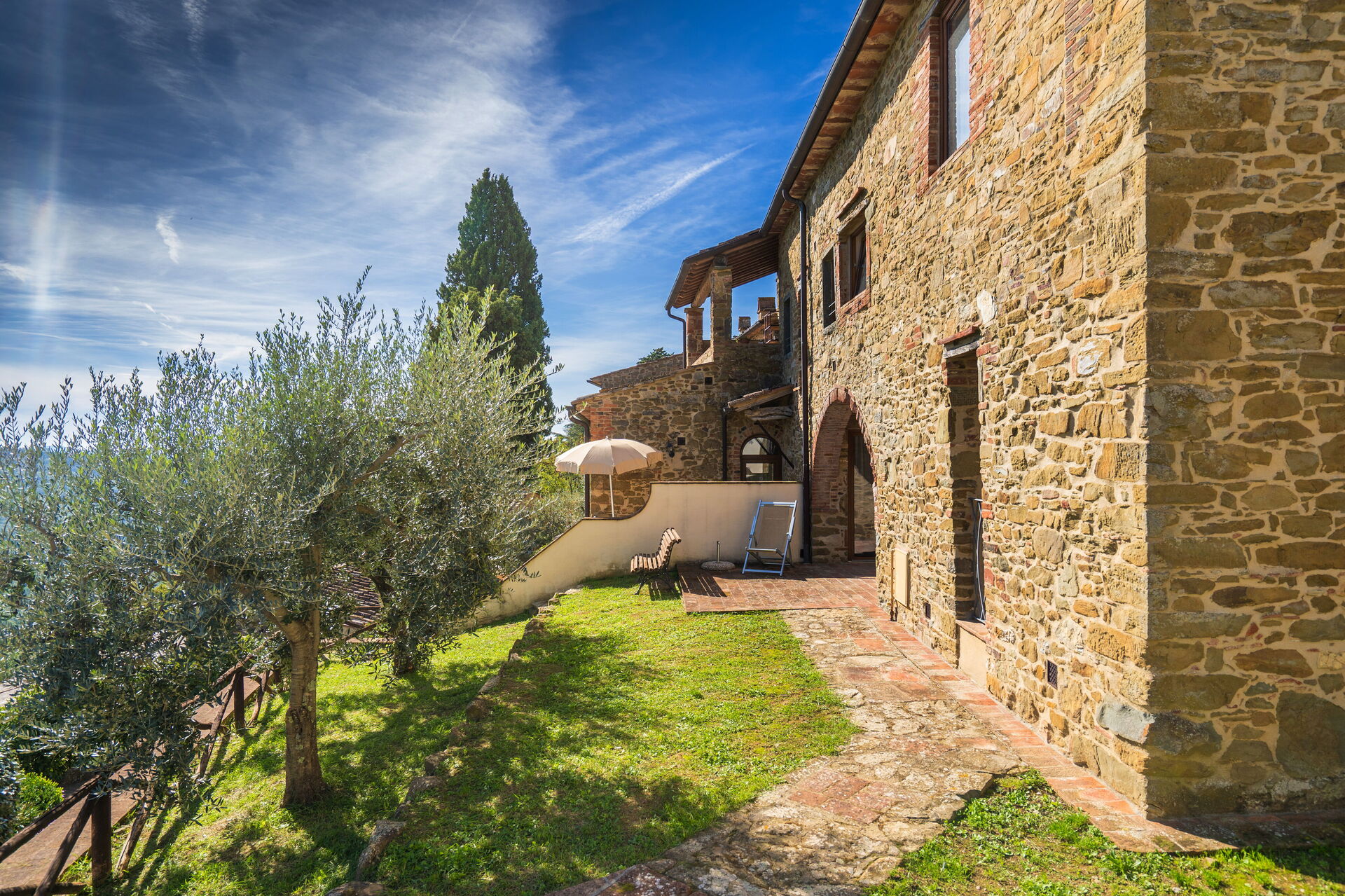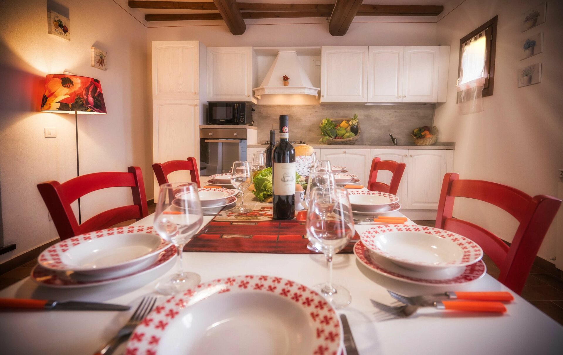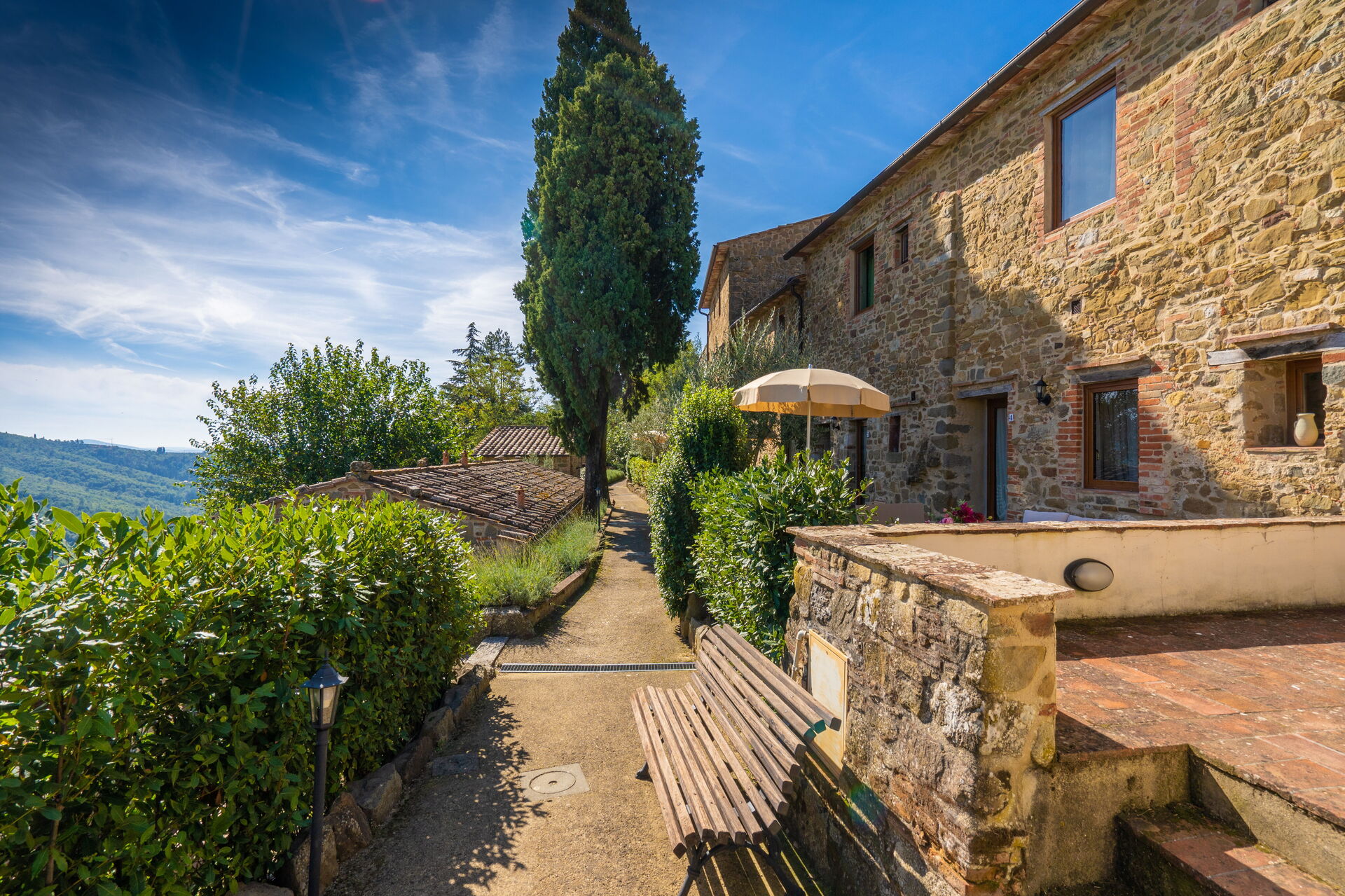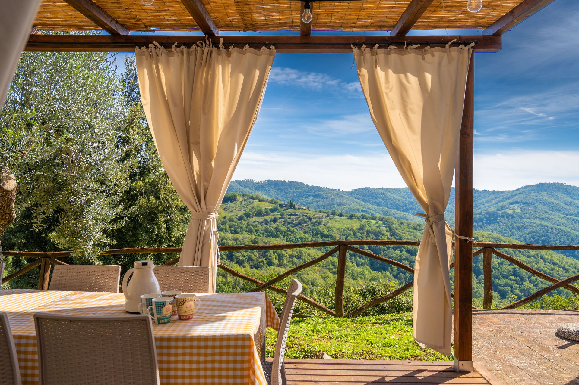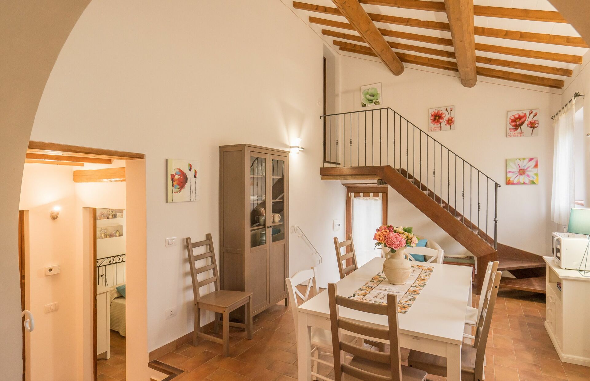 Ved ankomst vil I møde en fin ren velholdt ejendom med udsigt over bakkerne ideel til rolig ferie i Toscana. Til jeres store nydelse vil I finde en privat pool, hvor I kan køle ned, mens I nyder en dejlig kold drik efter en travl dag med shopping. At nyde et måltid med venner og familie er en stor del af den toskanske kultur. Benyt det velekviperede køkken til madlavning med lokale produkter, når du er på ferie. Køkkenet indeholder kaffemaskine, mikroovn, brødrister og køleskab, samt, masser af service og bestik til op til 22 personer. Spis 'al fresco' som en ægte toskaner. Den fuldt møblerede er det perfekte sted for at nyde sit måltid, familien og det dejlige toskanske vejr.