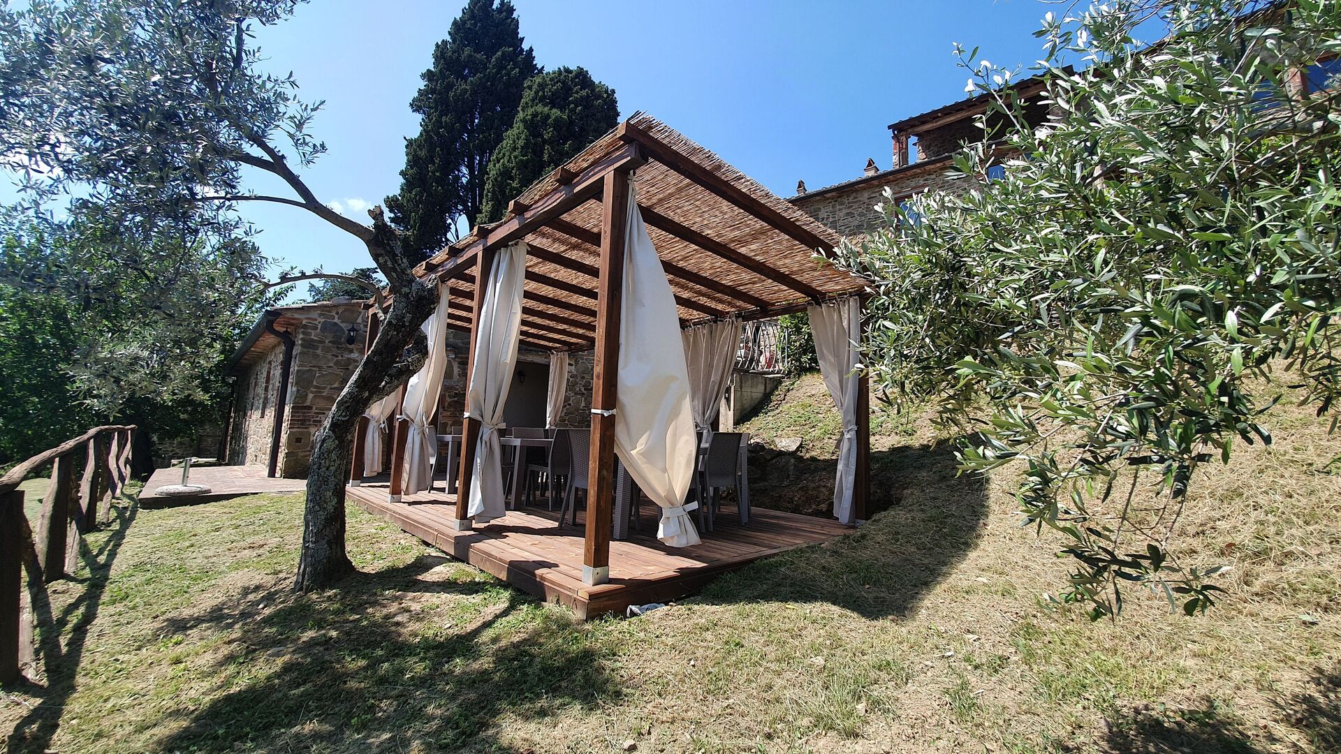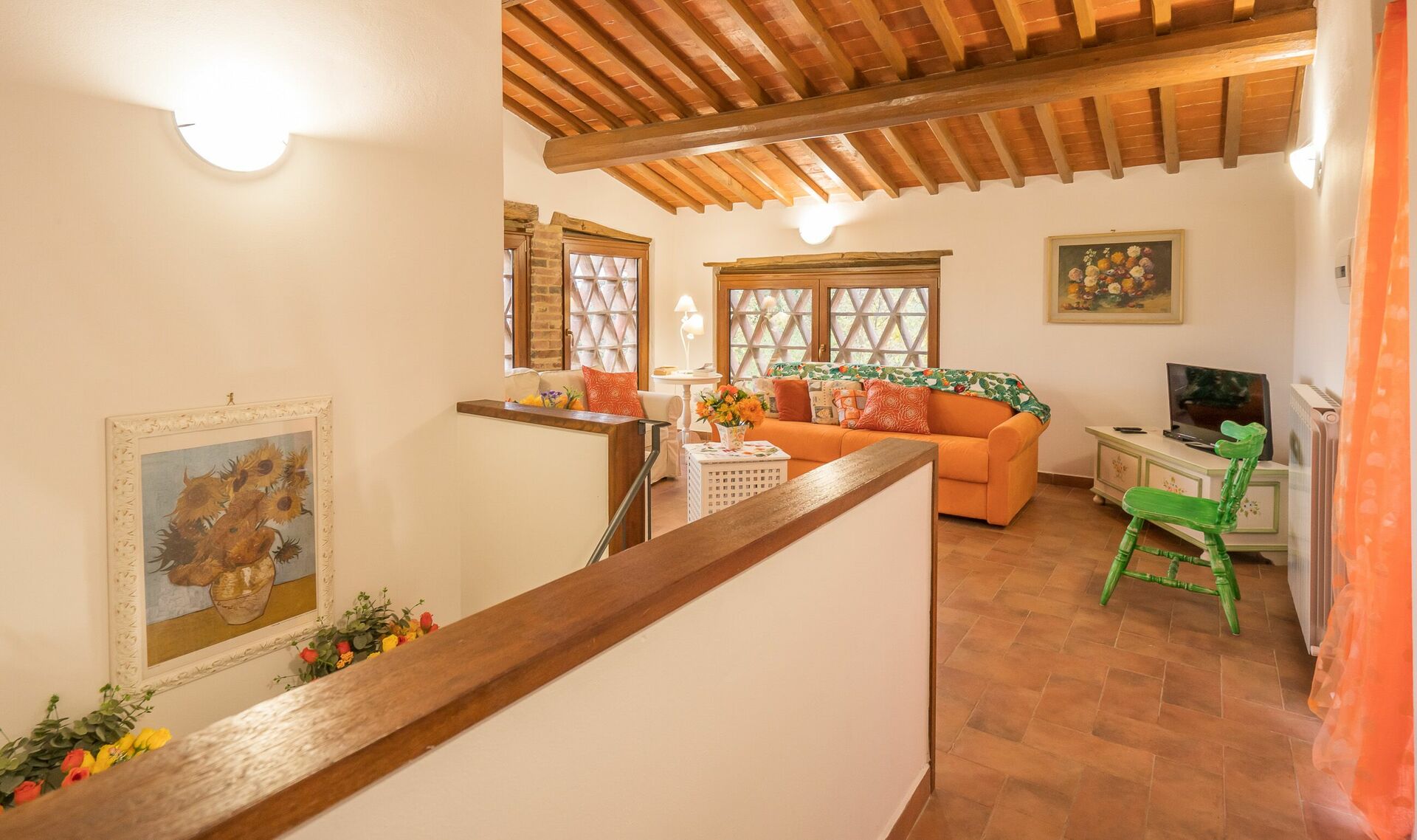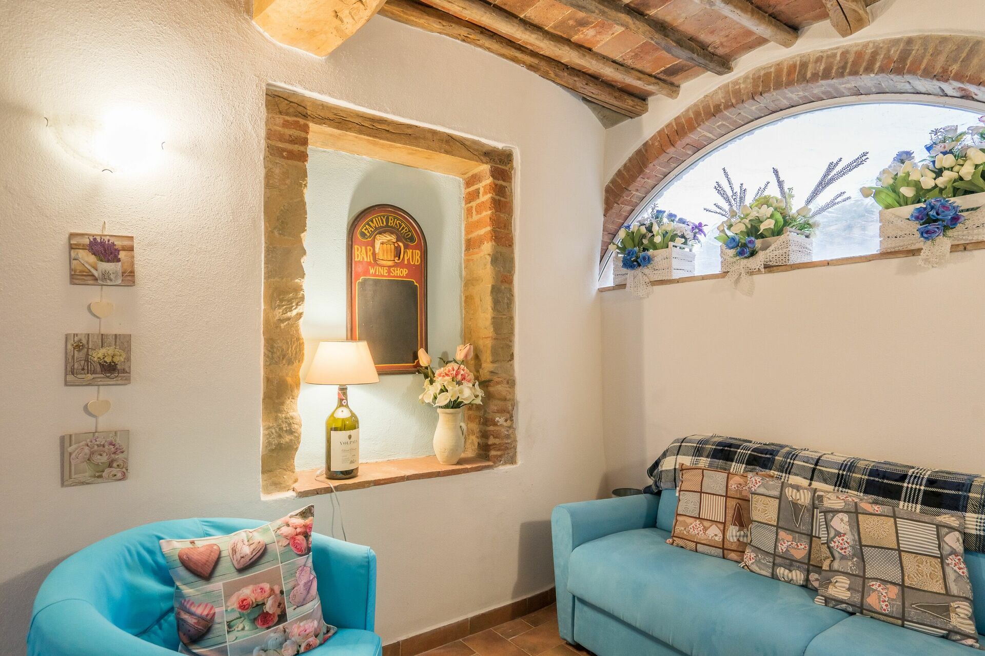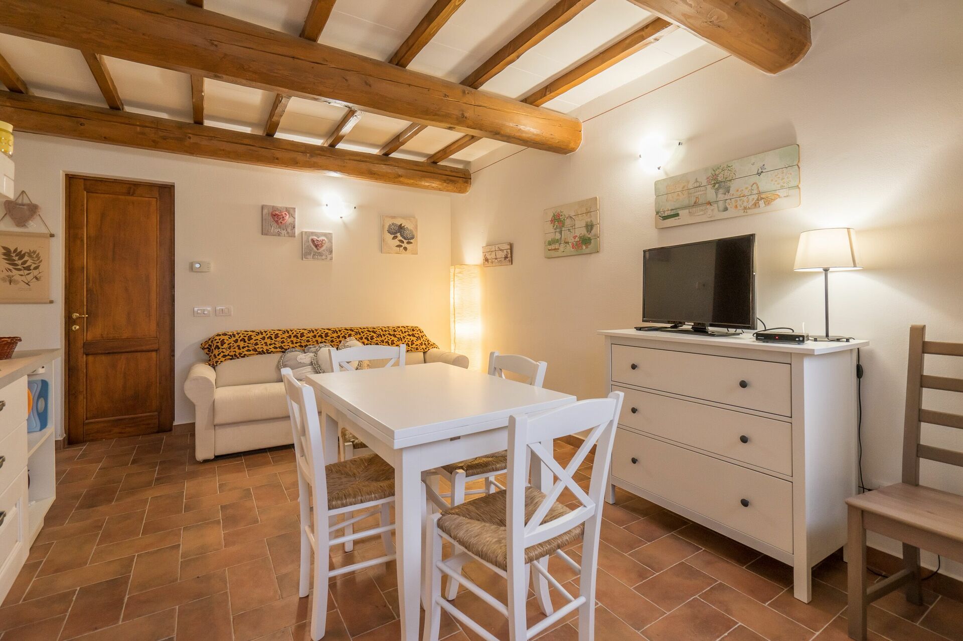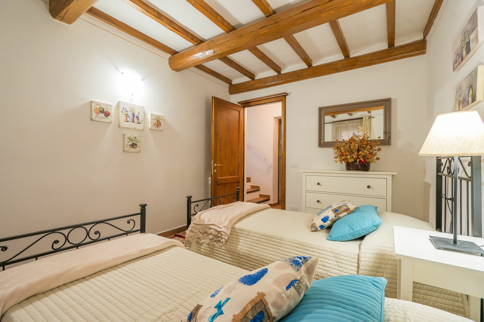 Ved ankomst vil I møde en fin ren velholdt ejendom med udsigt over bakkerne ideel til rolig ferie i Toscana. Til jeres store nydelse vil I finde en privat pool, hvor I kan køle ned, mens I nyder en dejlig kold drik efter en travl dag med shopping. At nyde et måltid med venner og familie er en stor del af den toskanske kultur. Benyt det velekviperede køkken til madlavning med lokale produkter, når du er på ferie. Køkkenet indeholder kaffemaskine, mikroovn, brødrister og køleskab, samt, masser af service og bestik til op til 22 personer. Spis 'al fresco' som en ægte toskaner. Den fuldt møblerede er det perfekte sted for at nyde sit måltid, familien og det dejlige toskanske vejr.